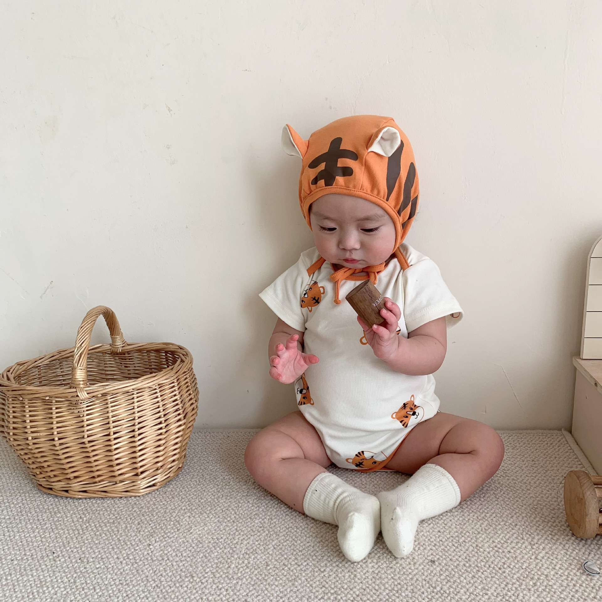 2024夏の新型赤ちゃん連体服セットins風赤ちゃんロンパース虎満印お尻服2点セット