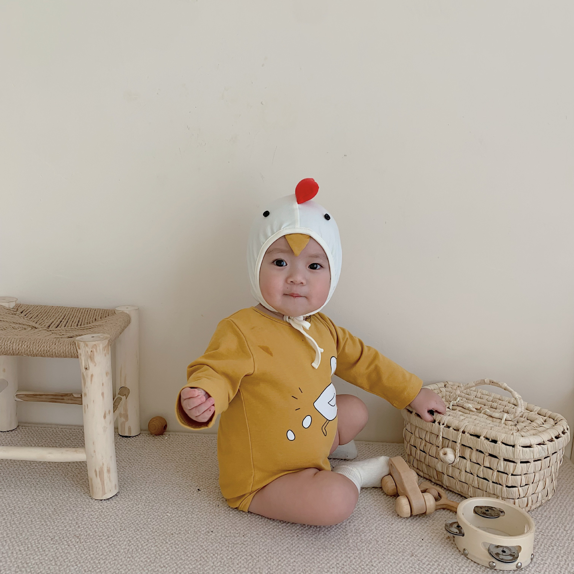 2024春の新型長袖連体服ins風金ひよこ卵プリントの赤ちゃんのお尻服セット