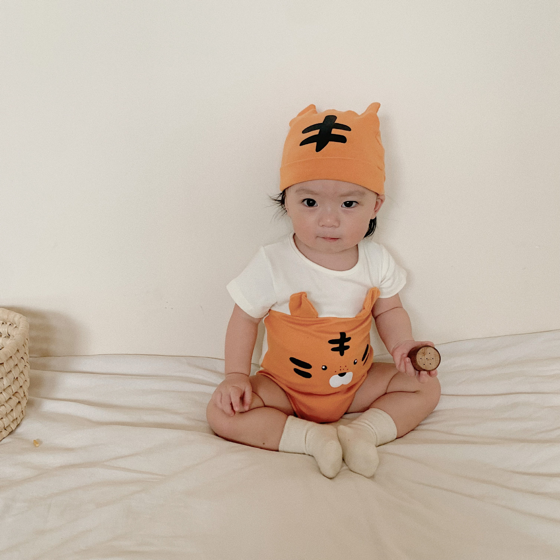 Ins韓国版赤ちゃん連体服2024夏の新しいトラの形の色合わせの服セット赤ちゃんのお尻の服