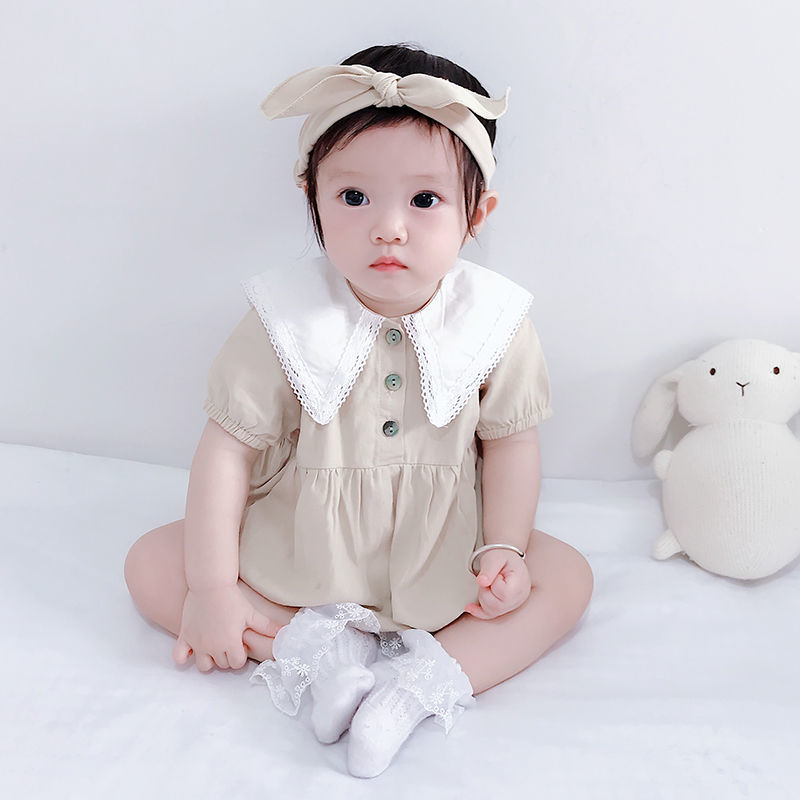 25春の新作ベビーワンピース、インスタイル、キュートなシャツカラーのデザイン、ロンパーススーツ、ベビーボディスーツ