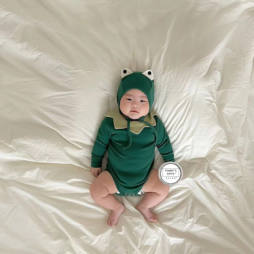 イン新しいカエルの形のベビージャンプスーツ 2025 夏の新しいベビー服外出クローラースーツ 2 点セット