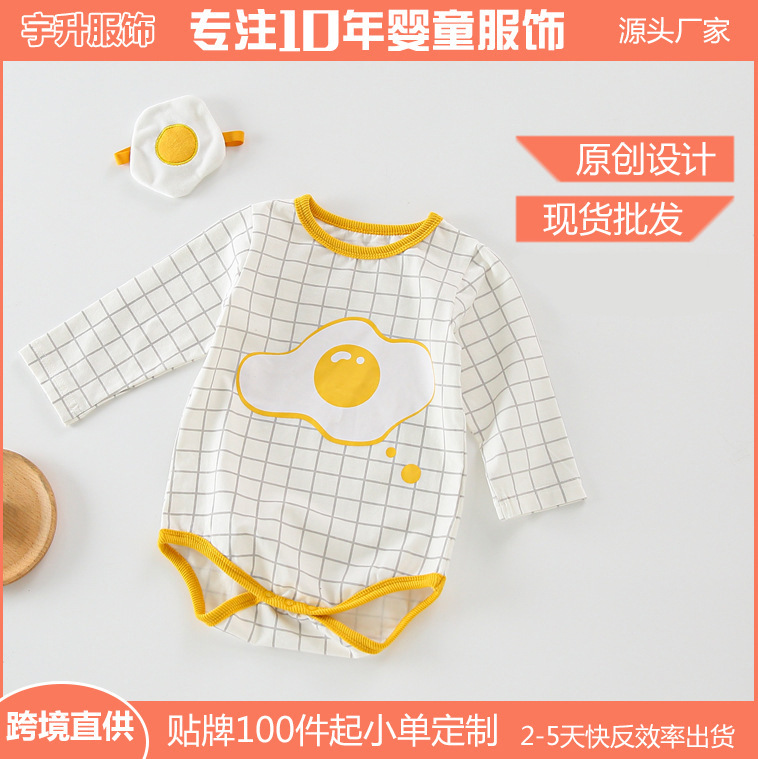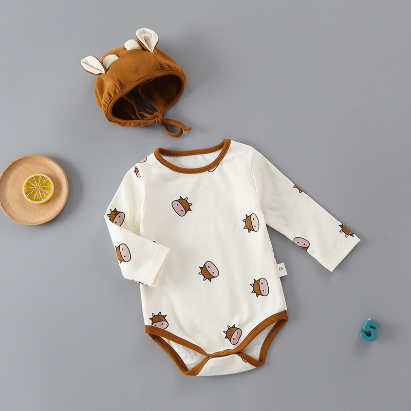 2024春と秋の韓国版の新入生の赤ちゃんのかわいい子牛は男女の赤ちゃんの長袖の三角連体のおならの服を登ります。
