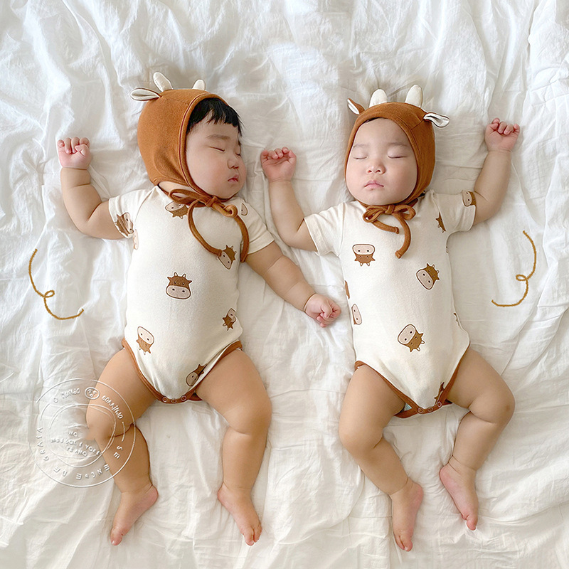 Ins夏のアニメの子牛の半袖の連体の服の薄い新型の韓国版の丸首の頭の乳幼児は服の卸売りに登ります。
