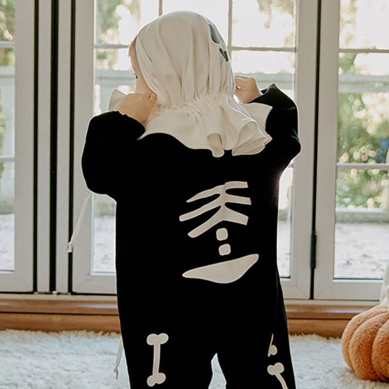 25 ハロウィン ベビー コスチューム イン スモール スカル プリント ジャンプスーツ ベビー ホリデー ドレス 長袖スーツ