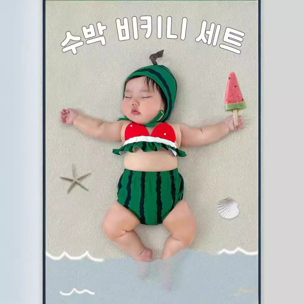 25夏用幼児水着ins子供用ビキニ水着かわいいスイカ型水着3点セット