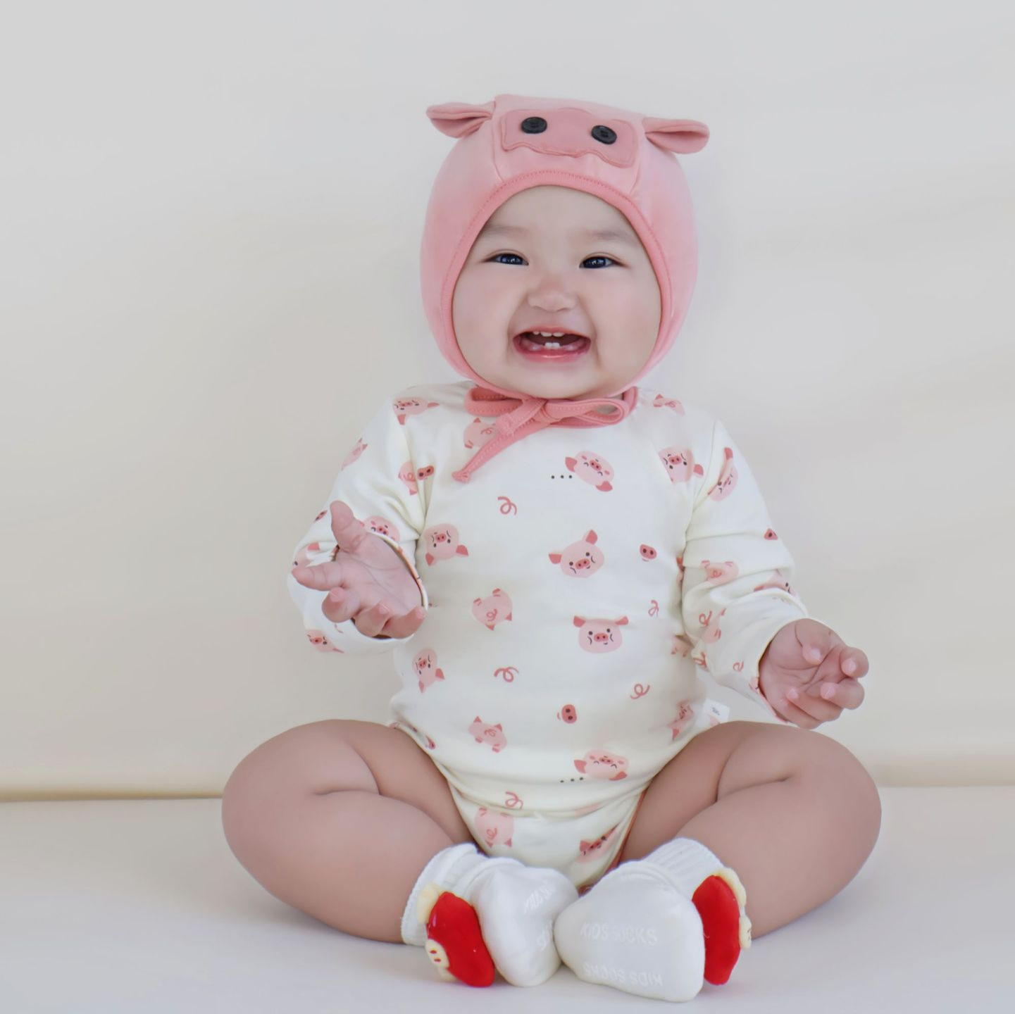 25秋の韓国版の赤ちゃんの連体服insの子豚がいっぱいに印刷されています。