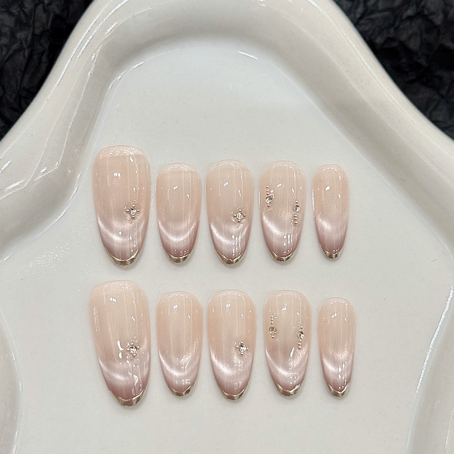 芸禾オリジナル【乳カフェクッキー】水晶砂利美ラード系白猫眼亮片純手作りネイル