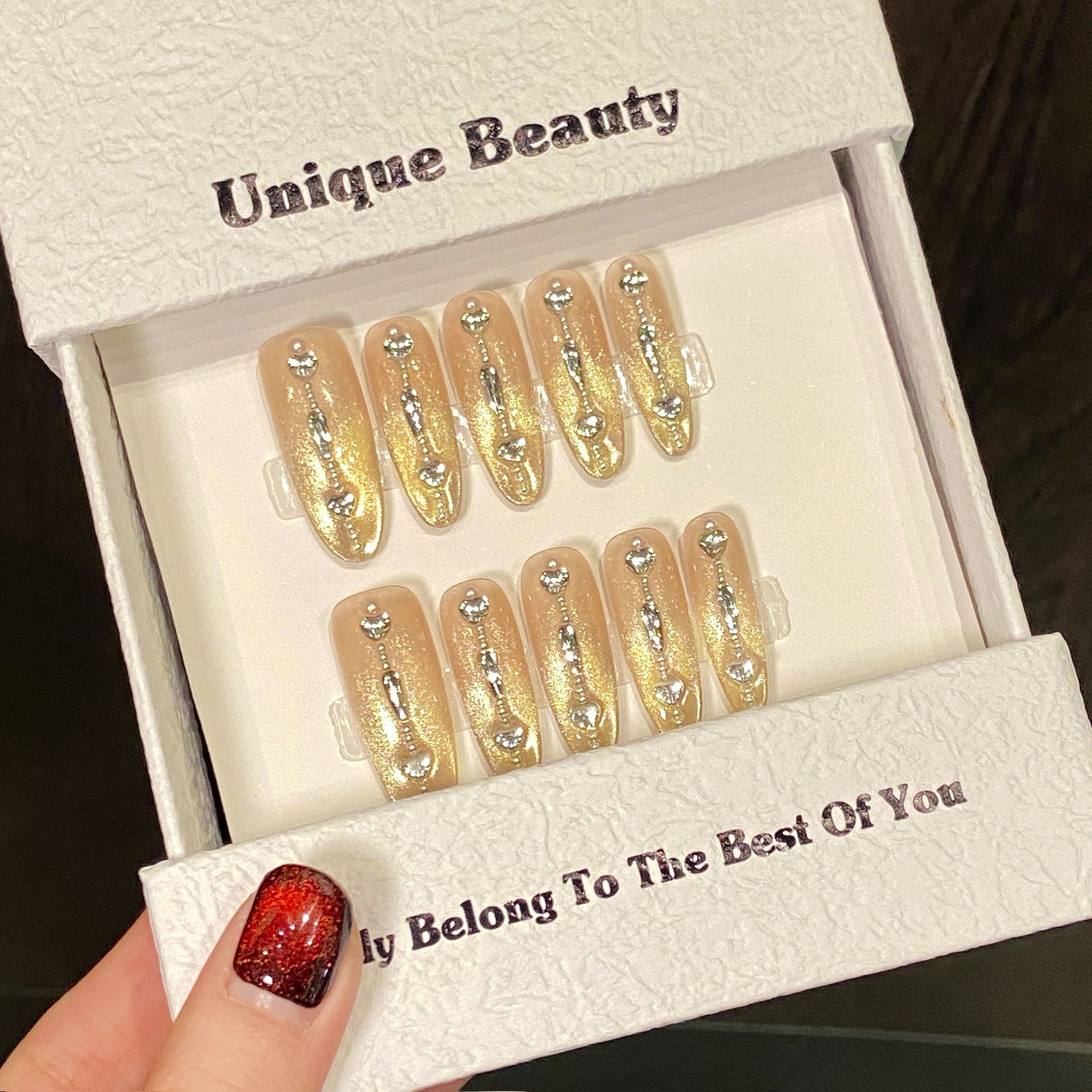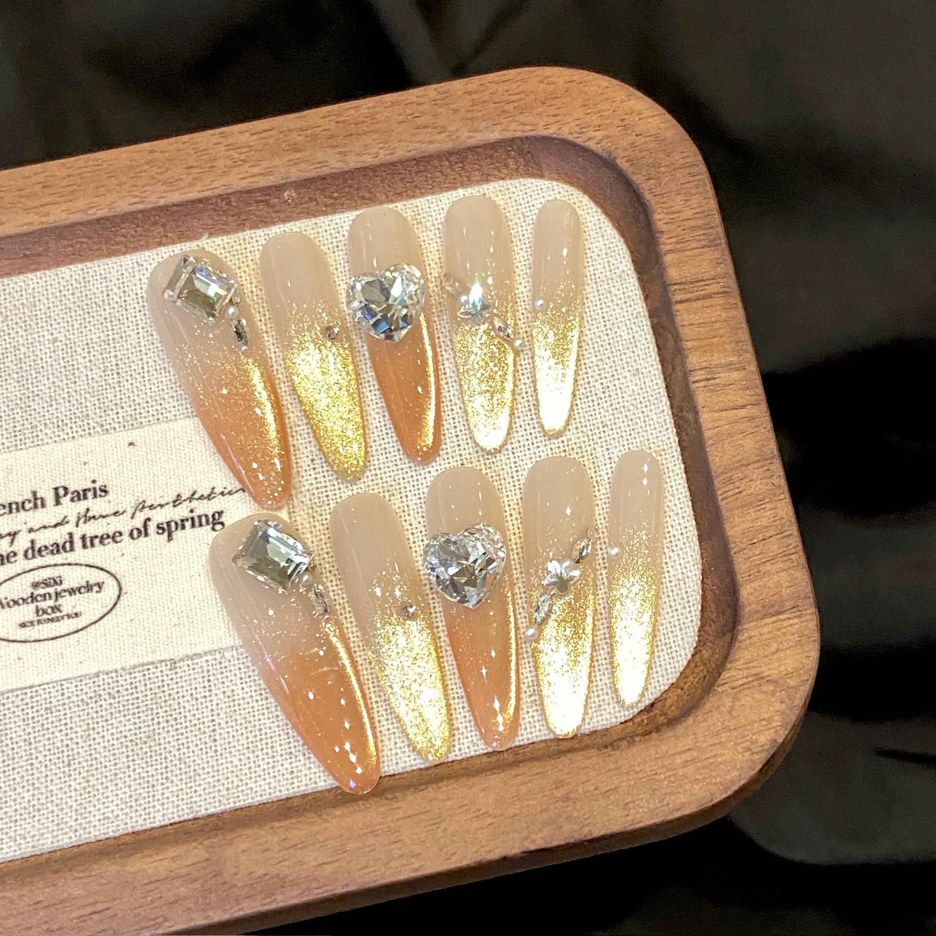 Yihe ブラックゴールドプリンセススタイルマニキュア手作りウェアラブルマニキュア氷透明細かいグリッターハイエンドクール取り外し可能な偽の爪