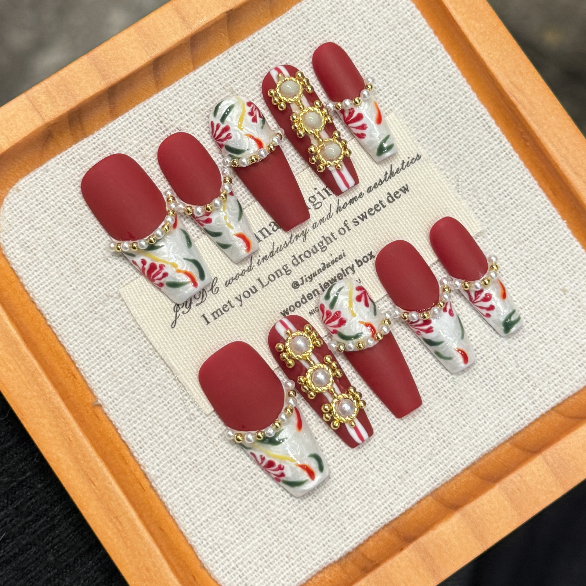 芸禾【ひ '嫁】新中国式秀禾婚甲純手作り光線治療服甲は卸売り甲片を取り外すことができます。