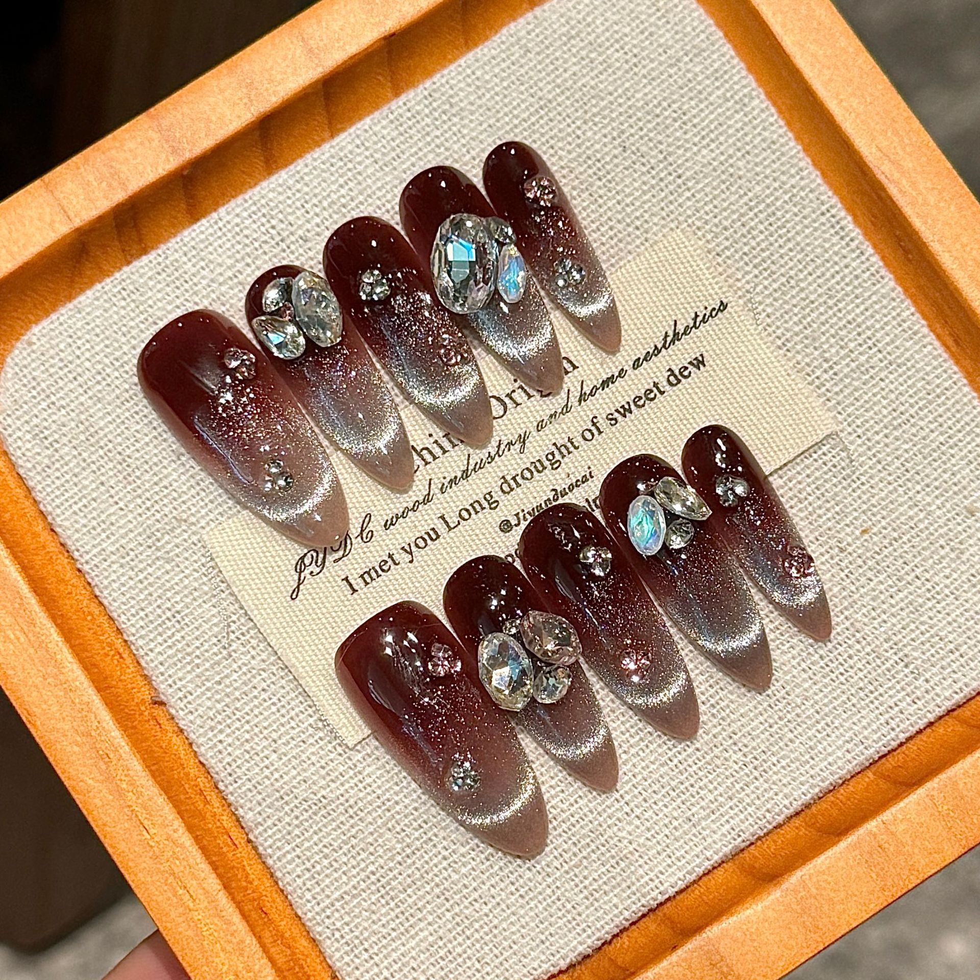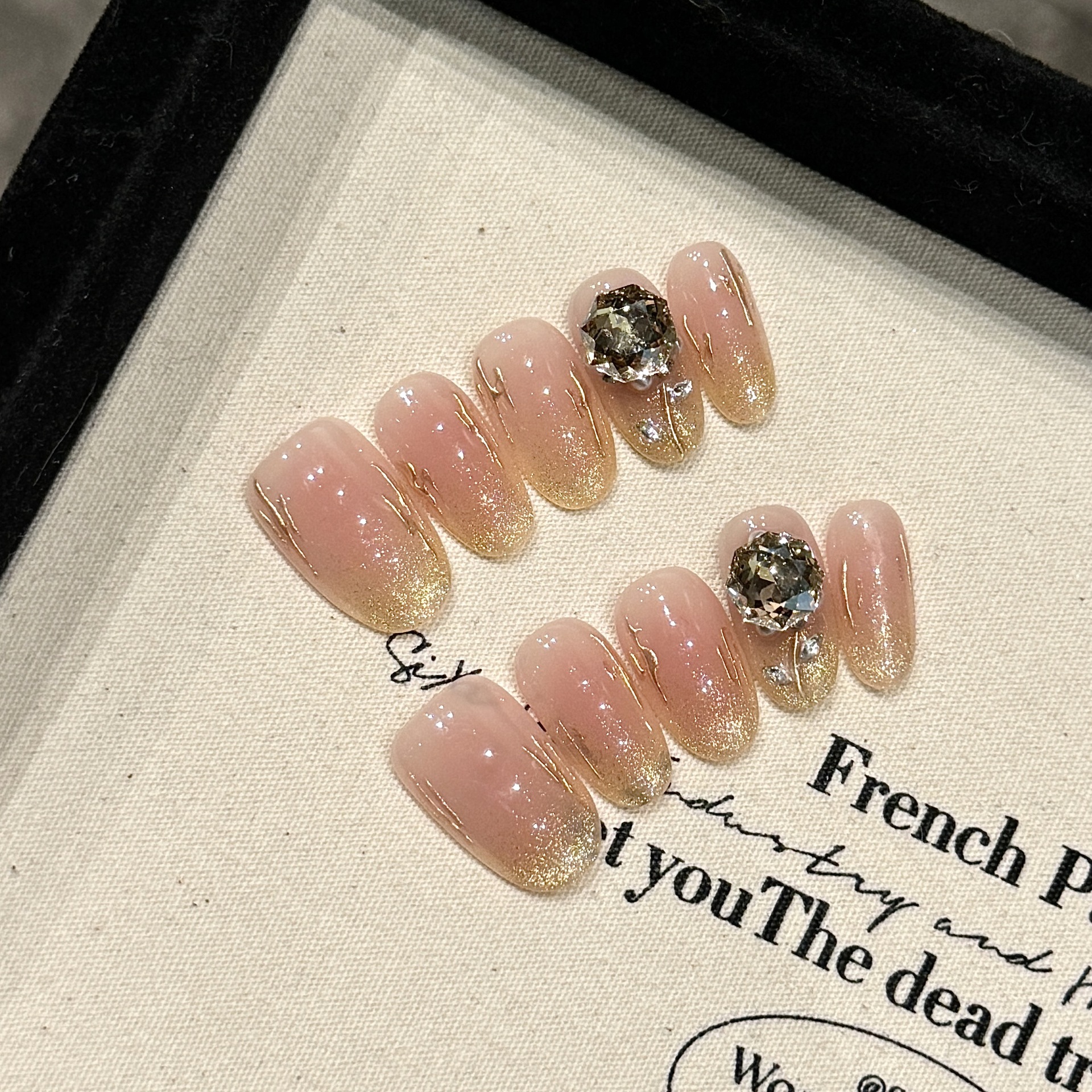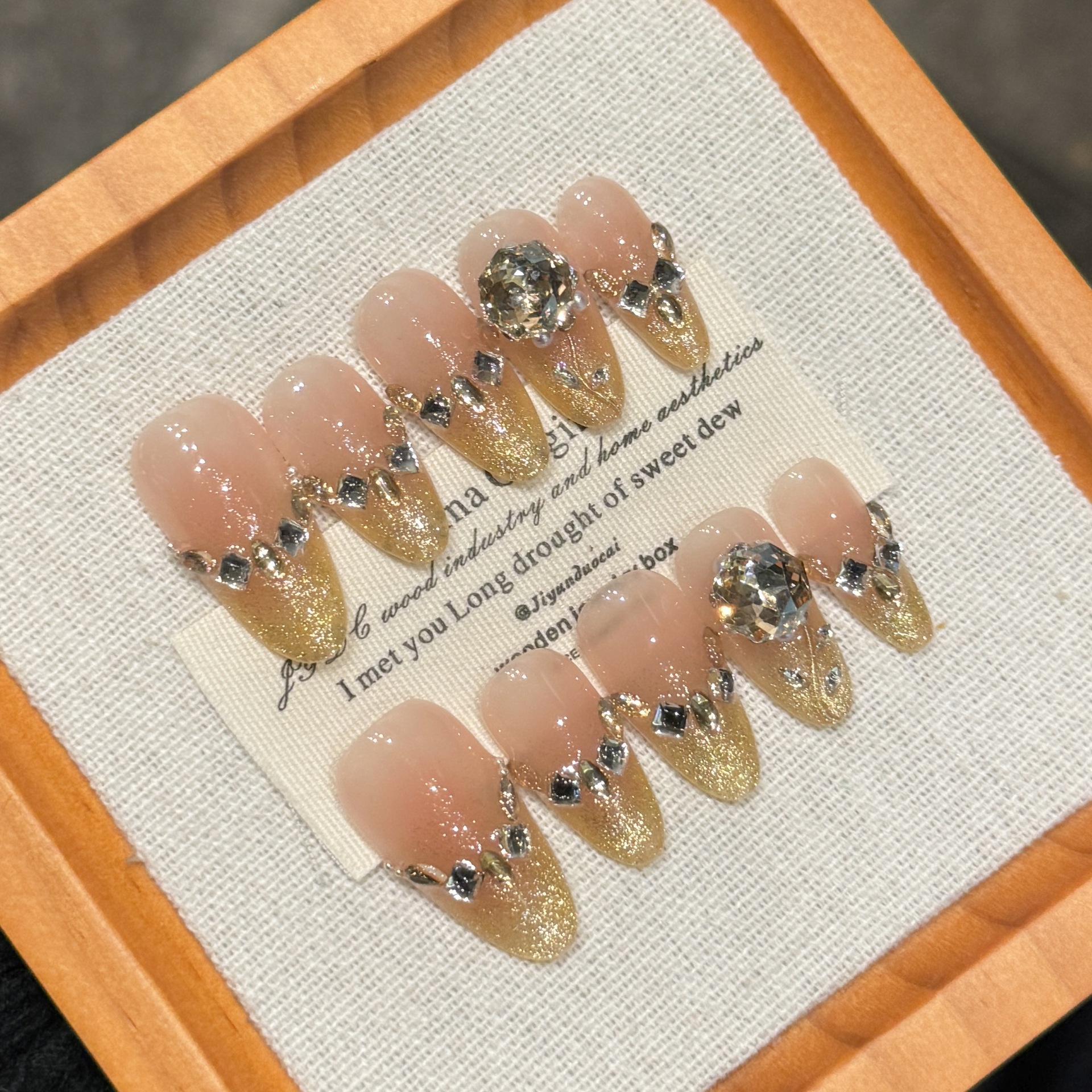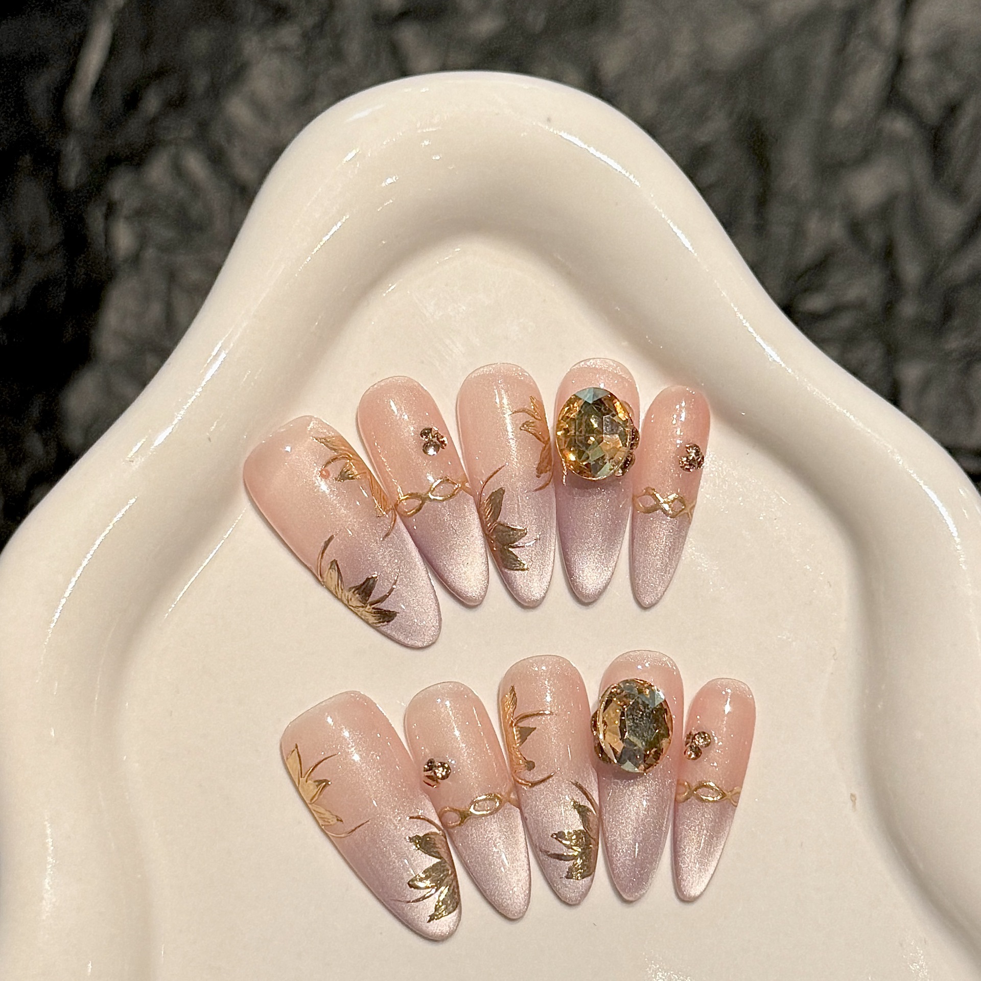 瑞卡曼【金色の魔鏡花】高級猫眼フレンチinsネット赤気質ギャル純手作り甲