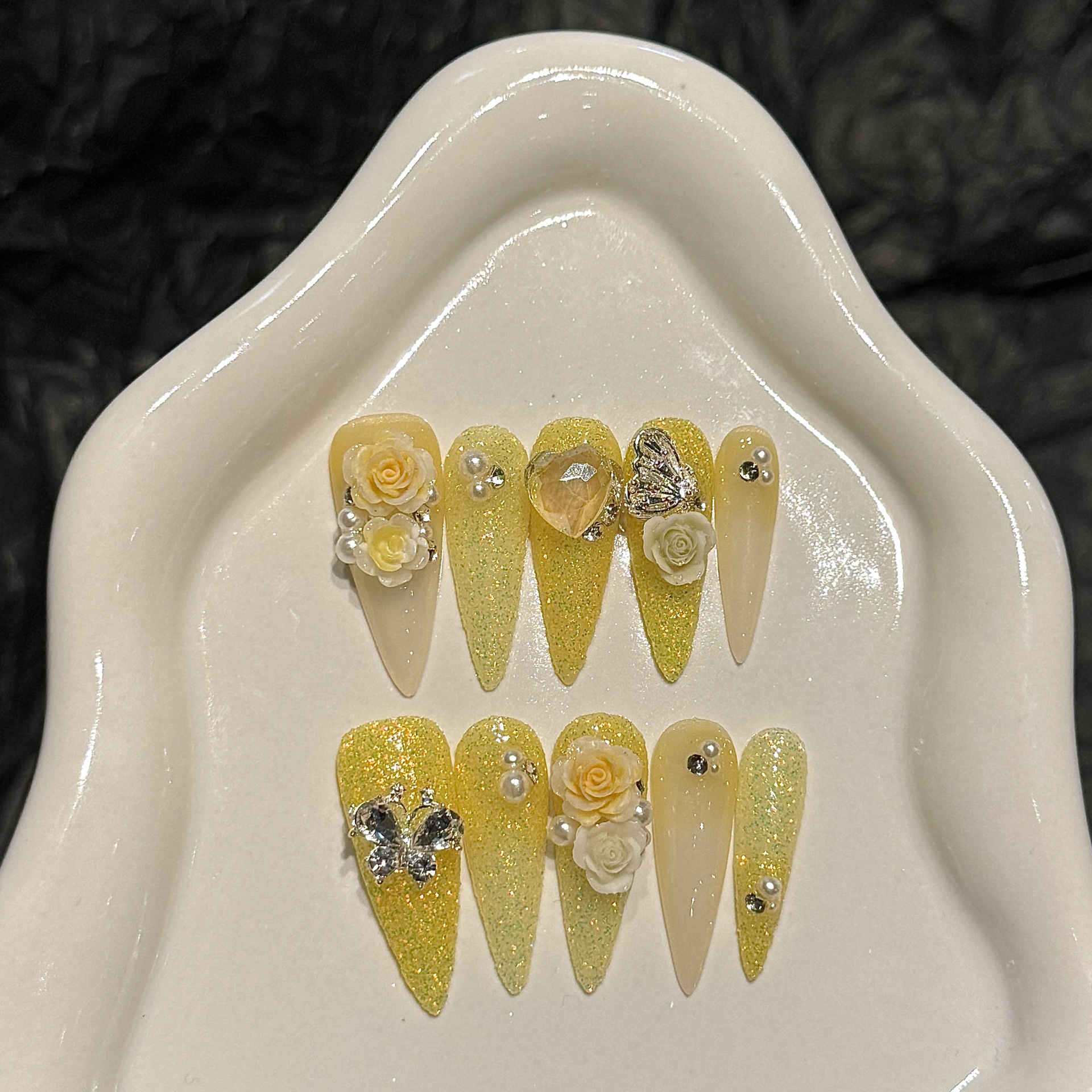 芸禾【夏のドーパミン】新商品の純粋な手作業の光線治療は甲のアーモンドの小さい清新な完成品の甲片を身につけます。