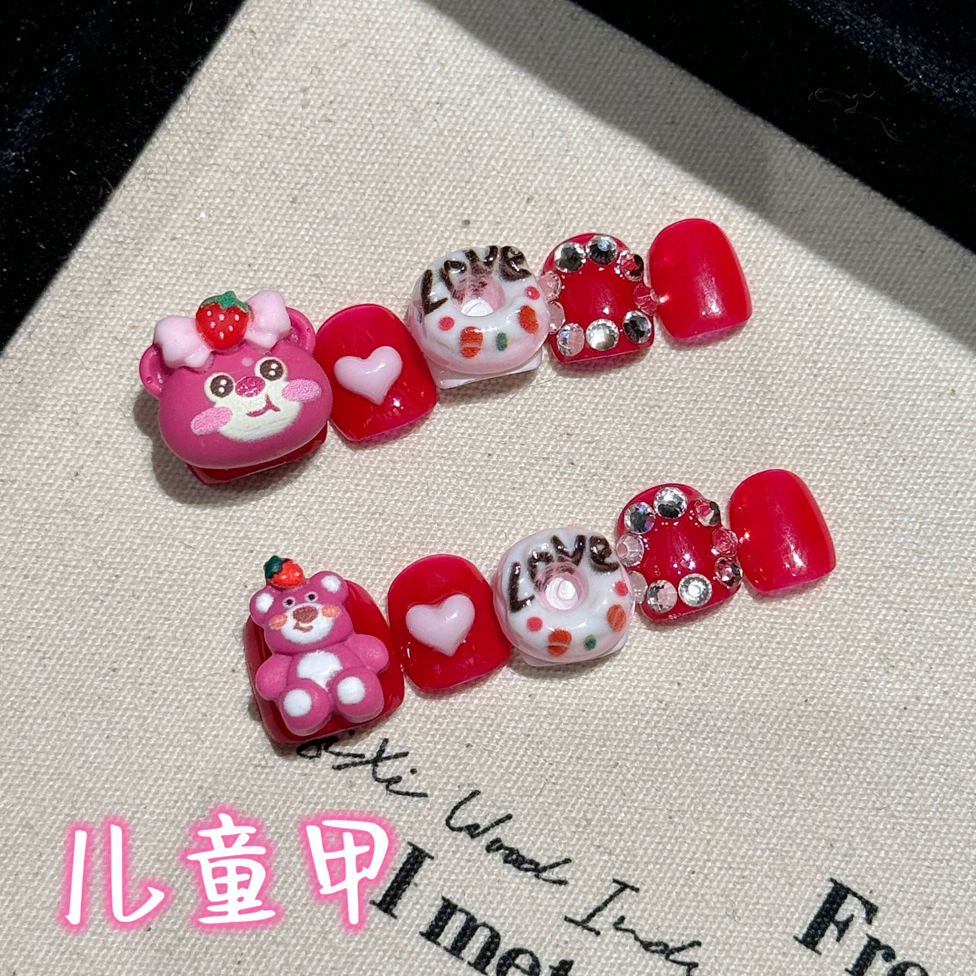 【芸禾子供甲】純粋な手作業で甲を着てかわいい風のアニメのイチゴ熊の3-12歳の子供は無毒です。