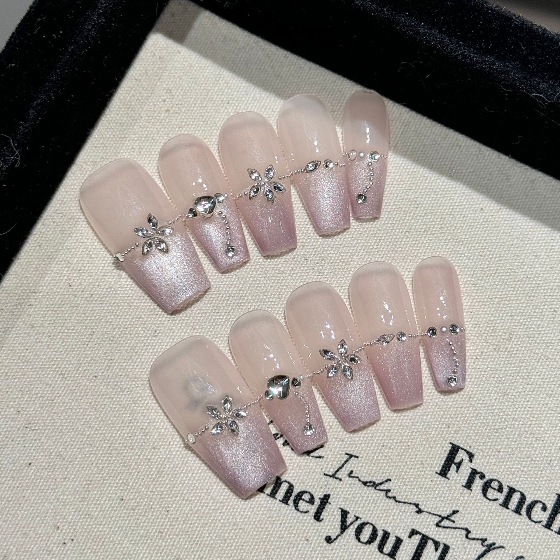 【月光星河】純粋な手作業で甲馬眼ジルコンシャンパングラデーション猫眼級感軽贅沢気質ネイル
