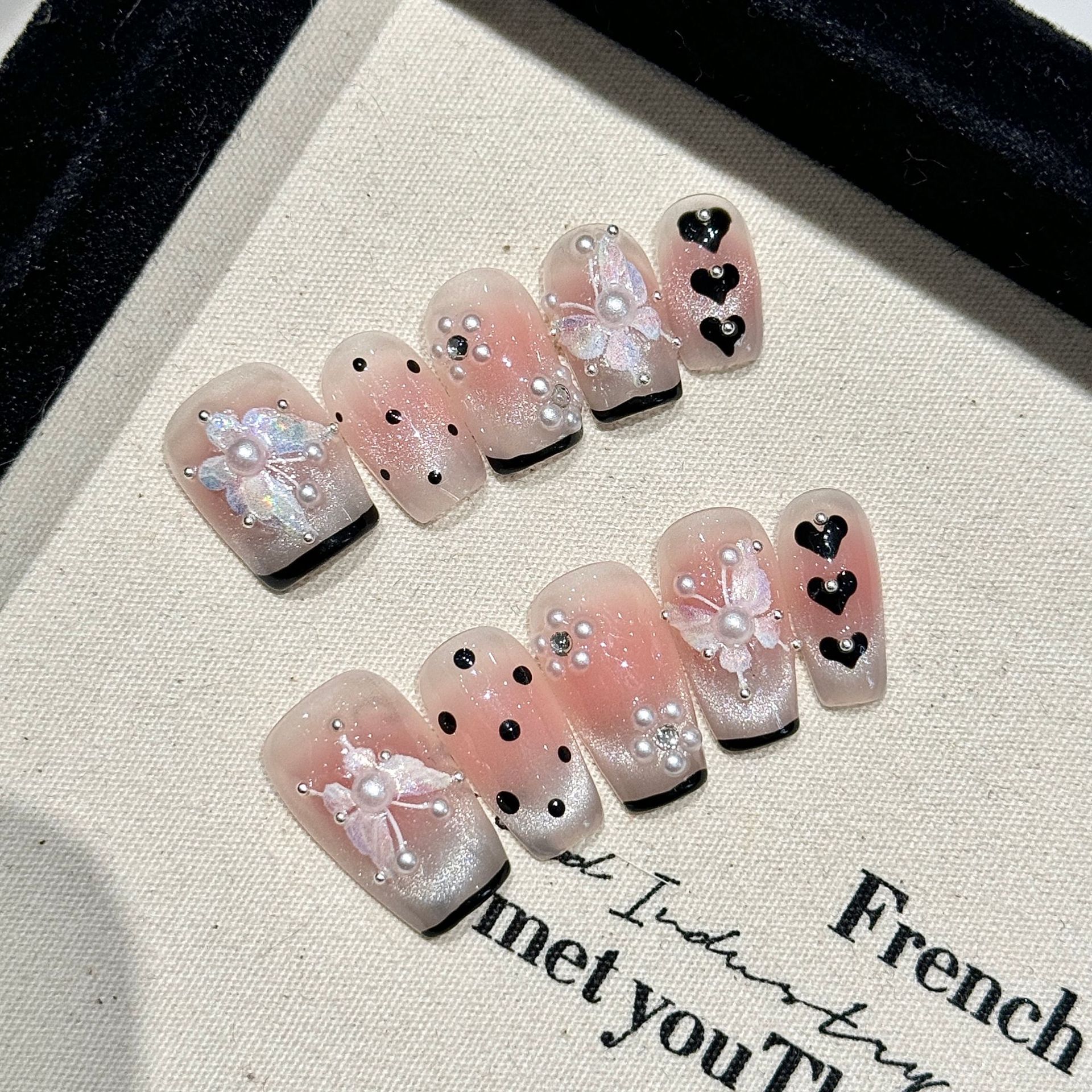 【ゴシックウサギ】純粋な手作業で甲を着てかわいい蝶結びをつまんで、暗い気質の小衆の手描き風の短い甲