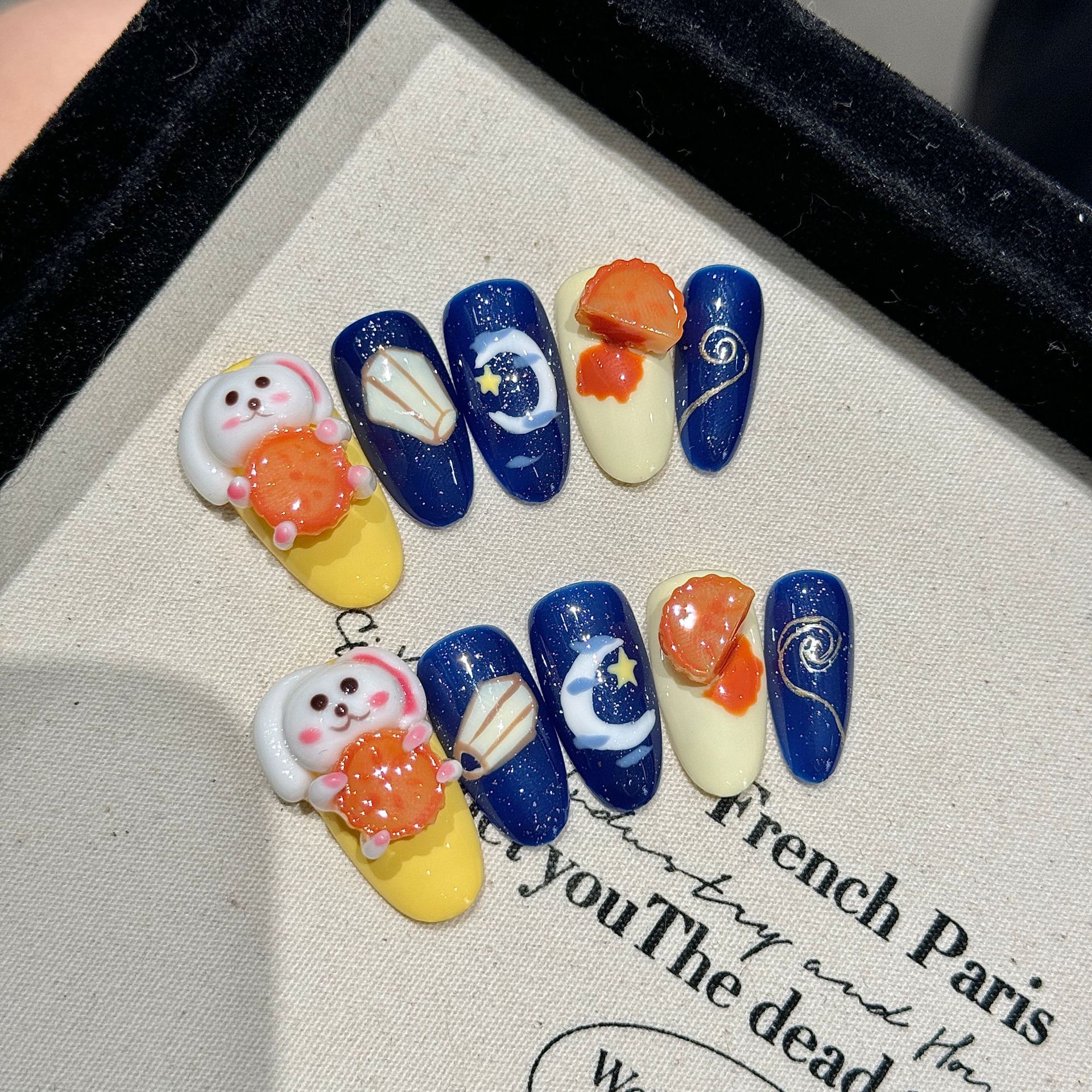 芸禾オリジナルモデル【中秋節限定】甲の可愛いウサギの月祥雲ネイルを着てネイルをします。