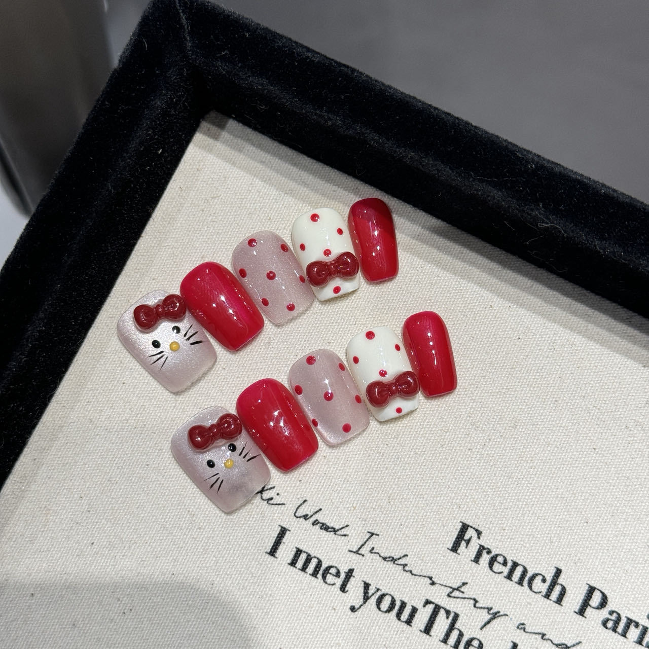 芸禾の純粋な手作りの服のかわいい風の短い爪の純粋な手描きの立体の漫画の成人のネイルの完成品のスーツ