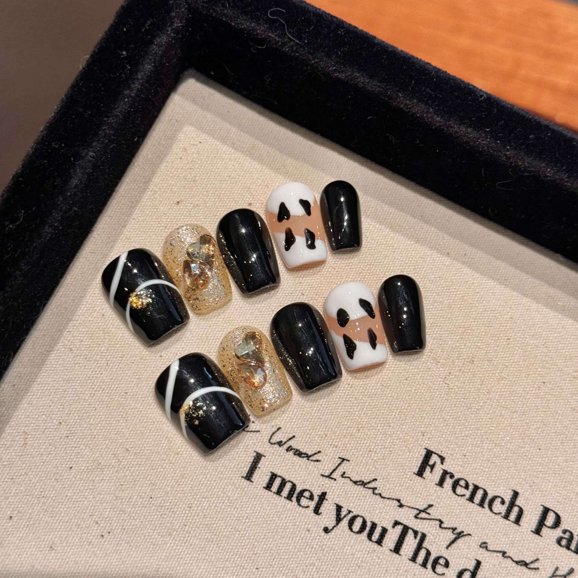 【凛月星辉】手描きぼかしゴシックダークサイバーパンク高级感手作り着甲完成品ネイル