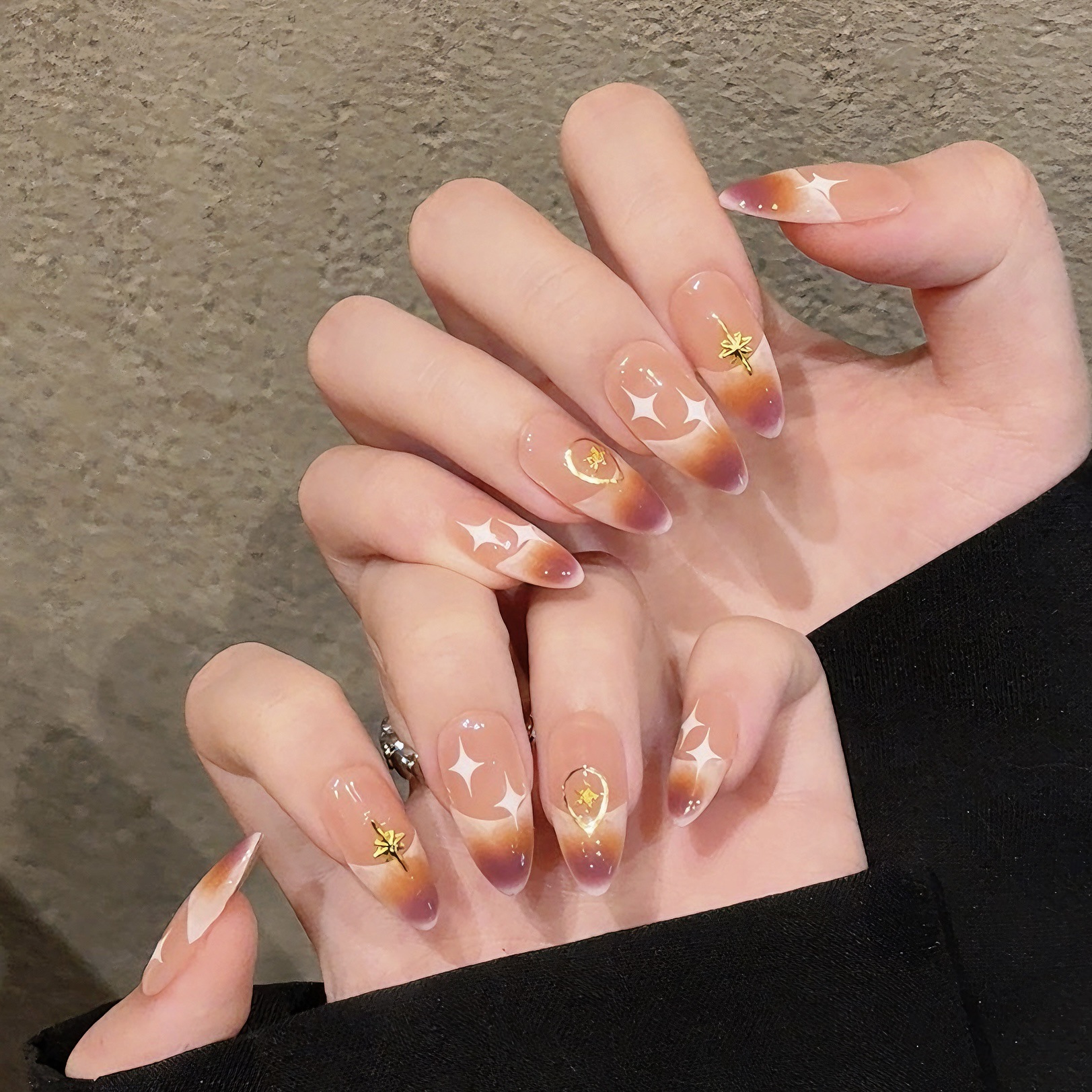 芸禾の頬紅の満天の星の手は甲のあごの紫星の甘い春夏のネイルアートを身につけて爪の卸売りの完成品を貼ります。