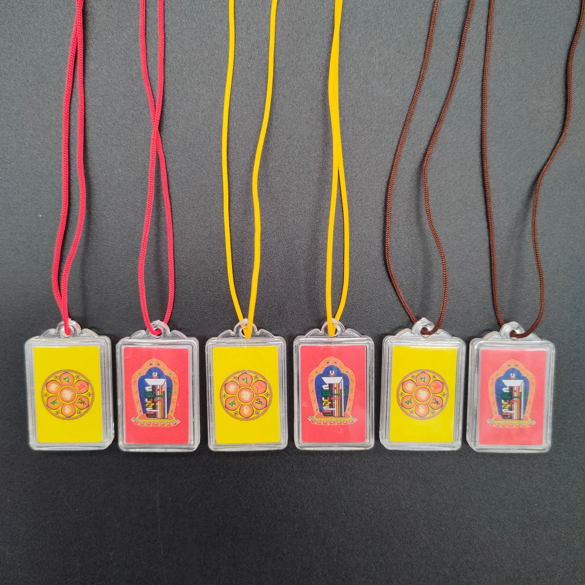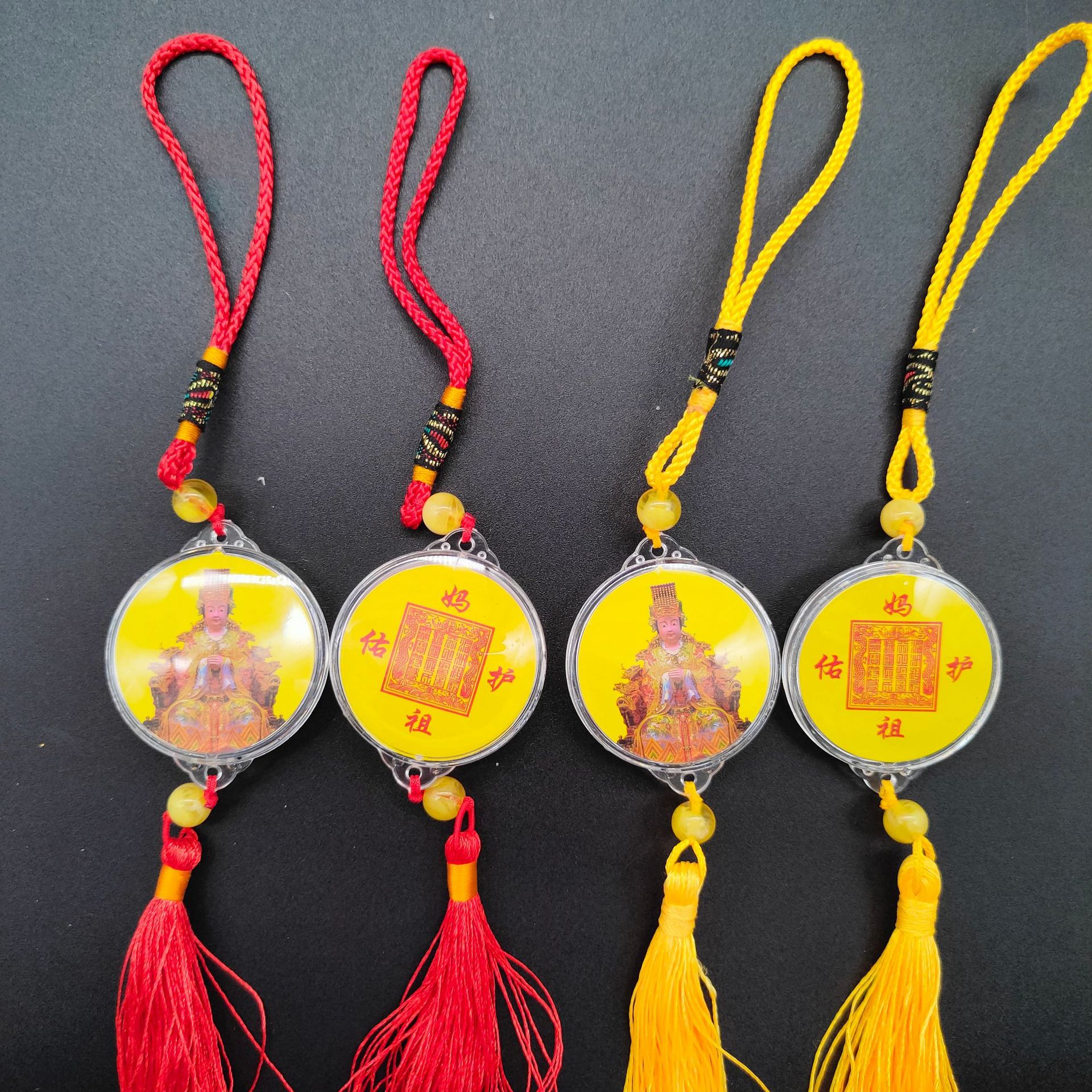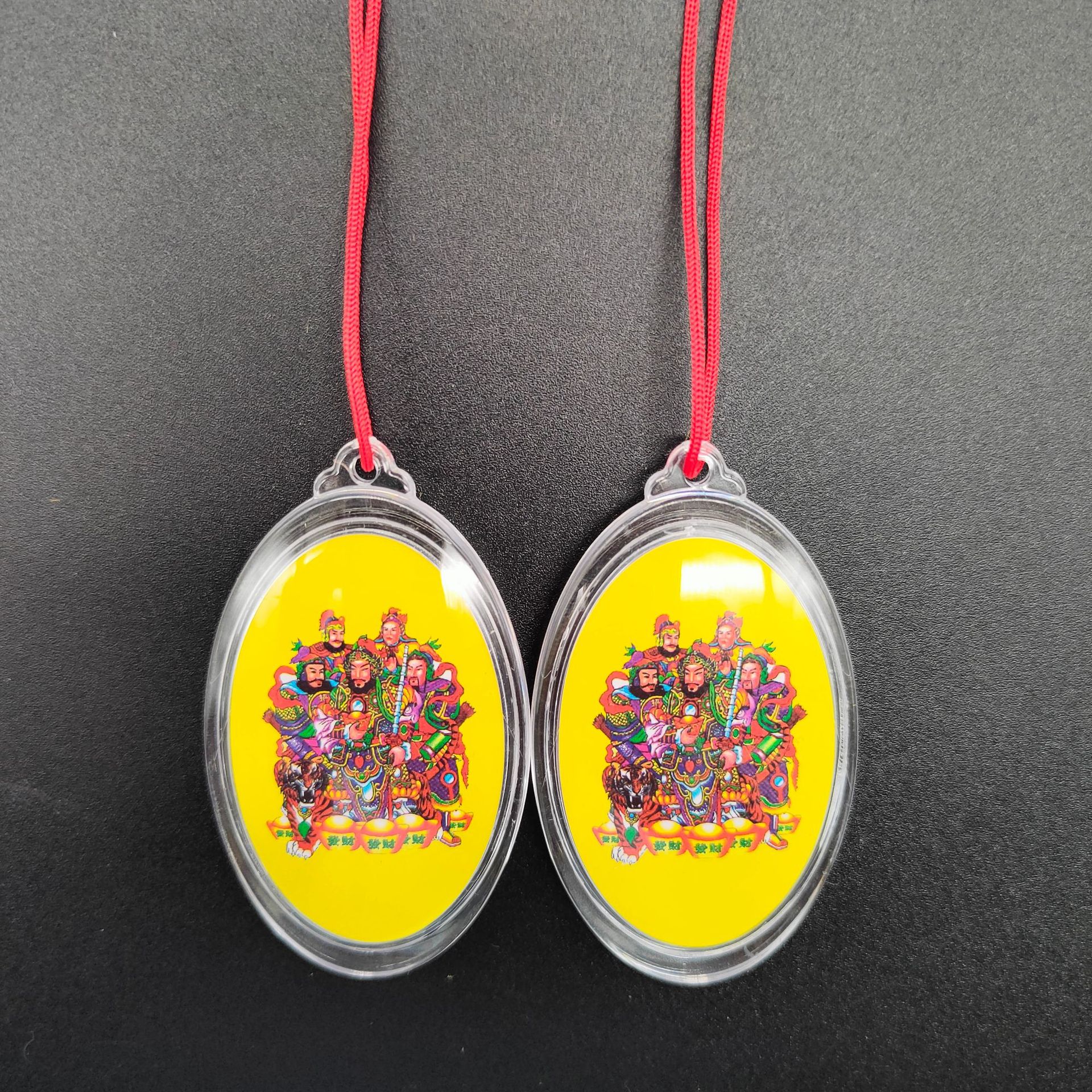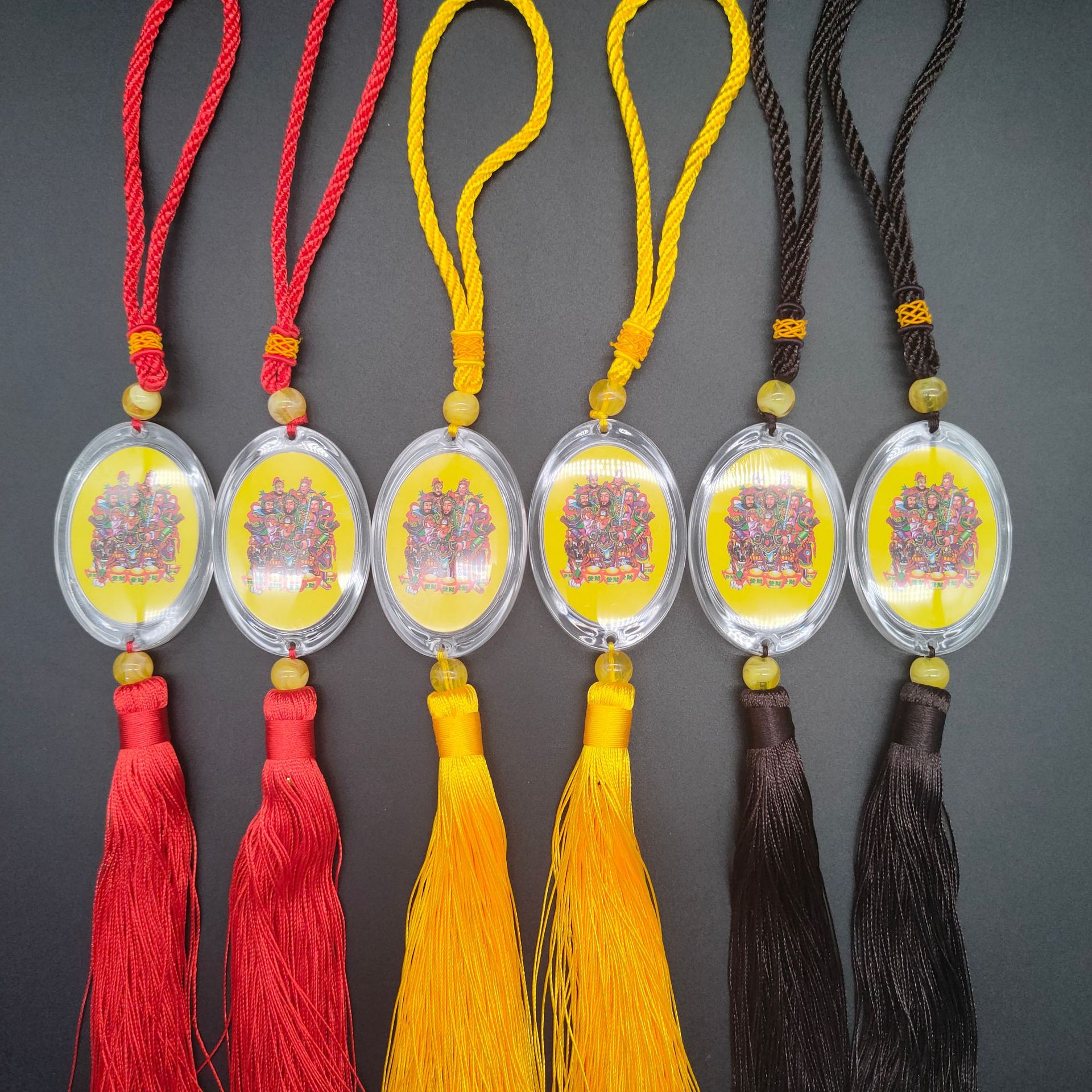[弘慧] 財神ペンダント中号卵形アクリルペンダント赤黄コーヒーロープ五色線ペンダント362