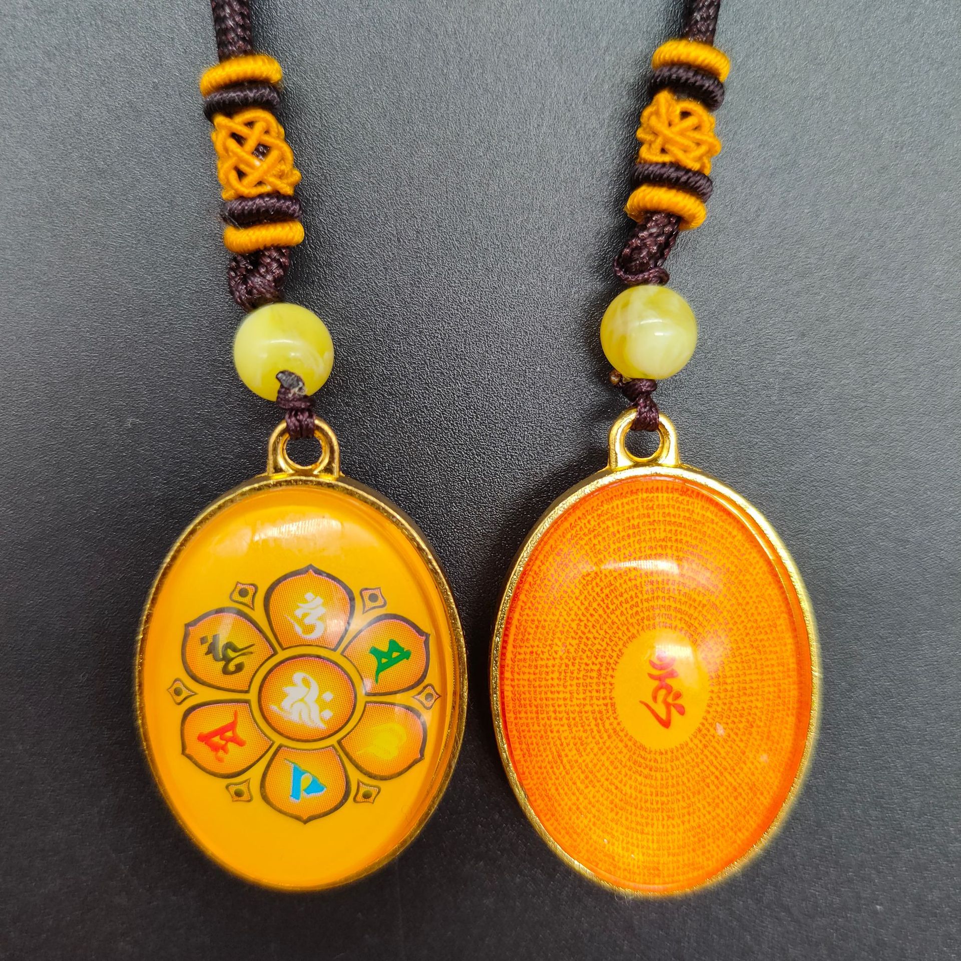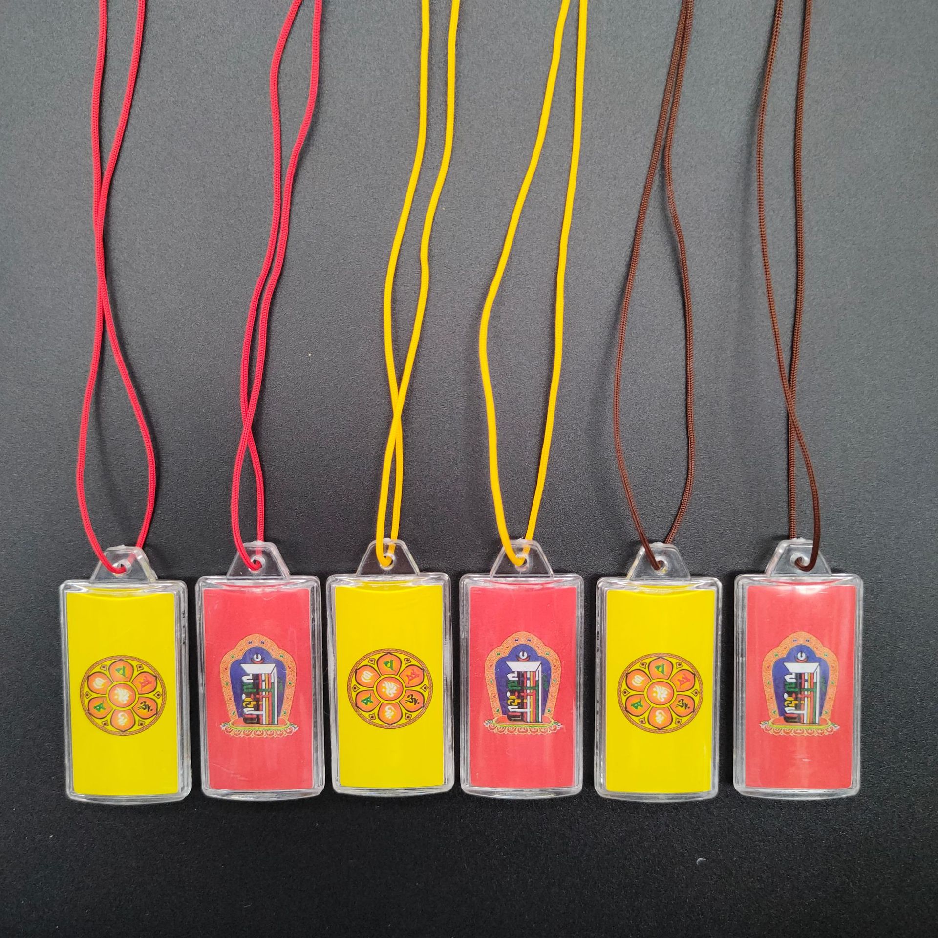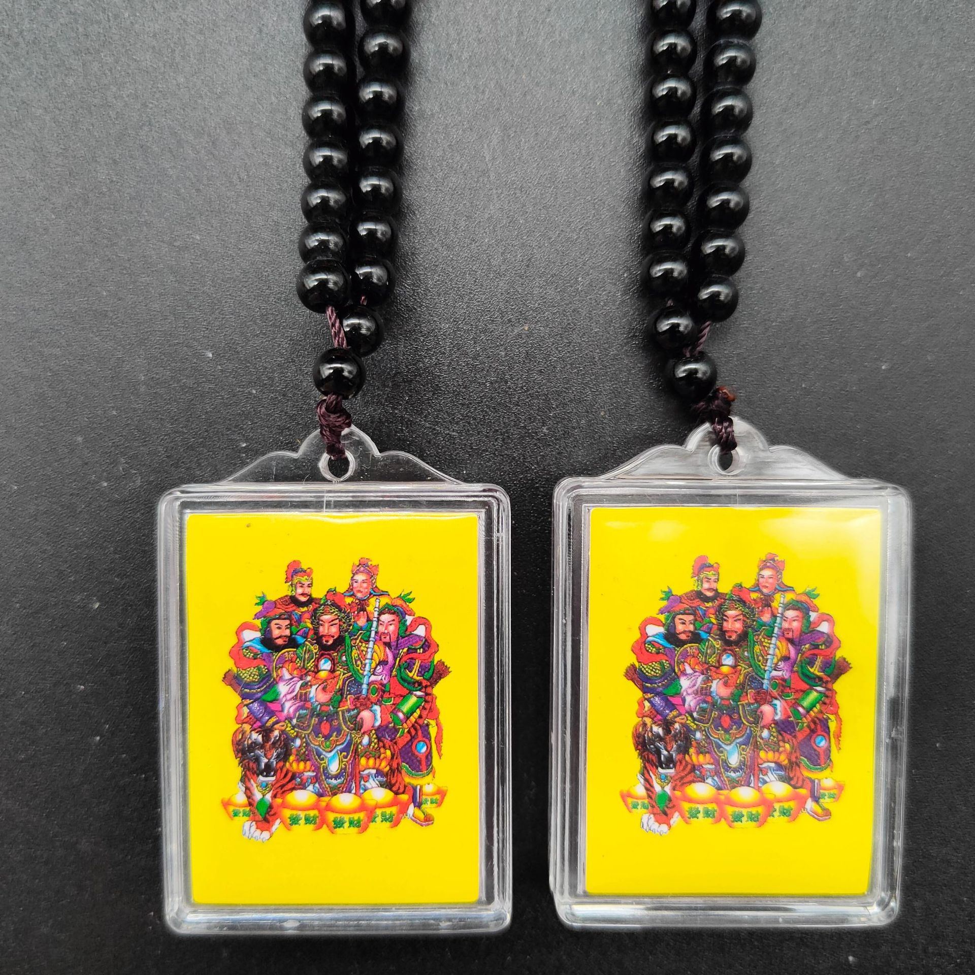 [弘慧] 財神ペンダント中号卵形アクリルペンダント赤黄コーヒーロープ五色線ペンダント362