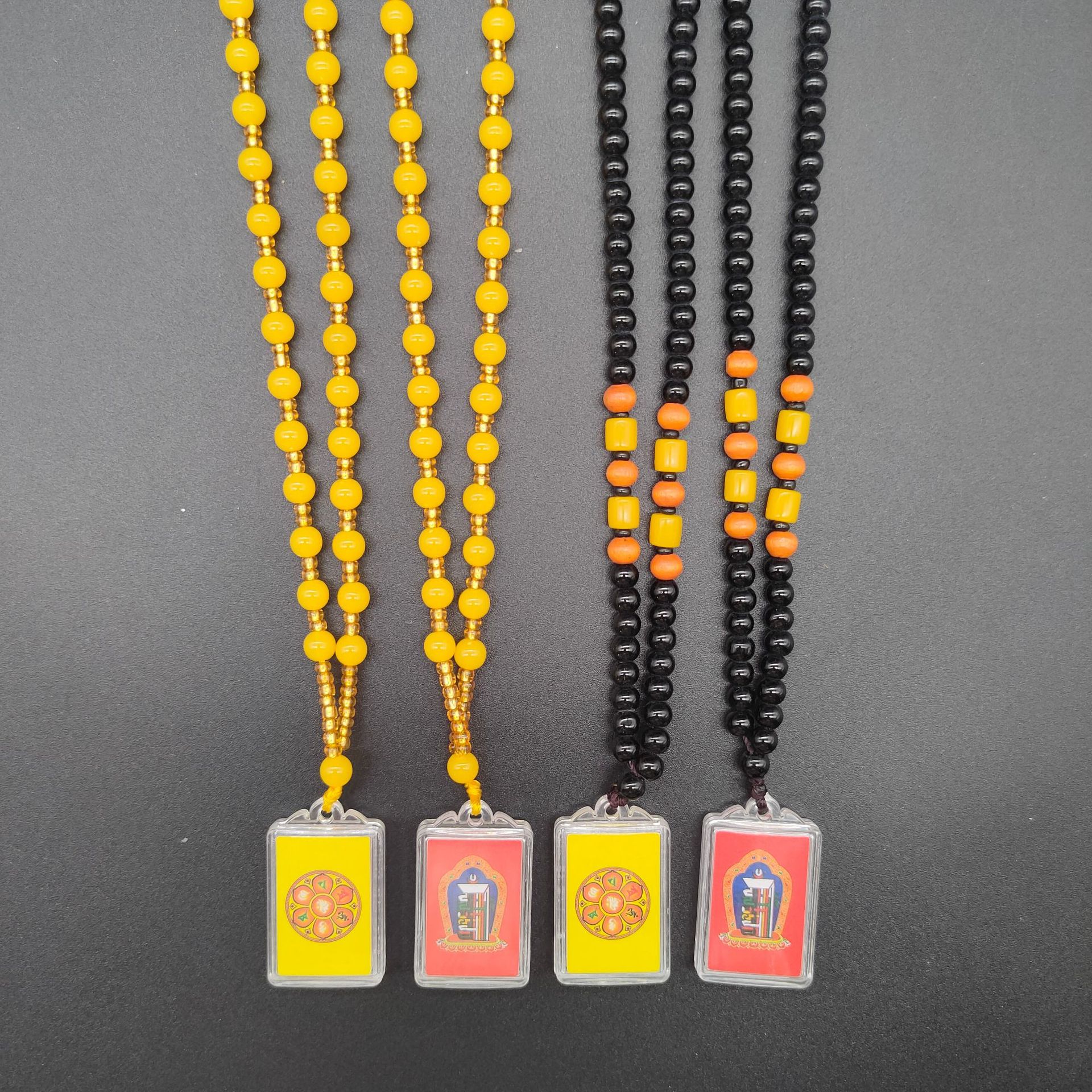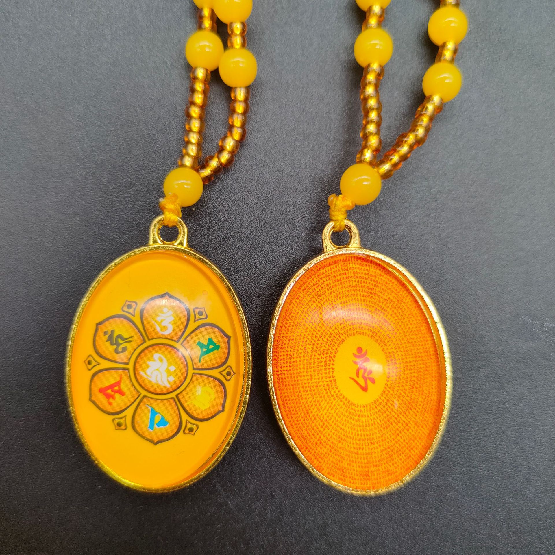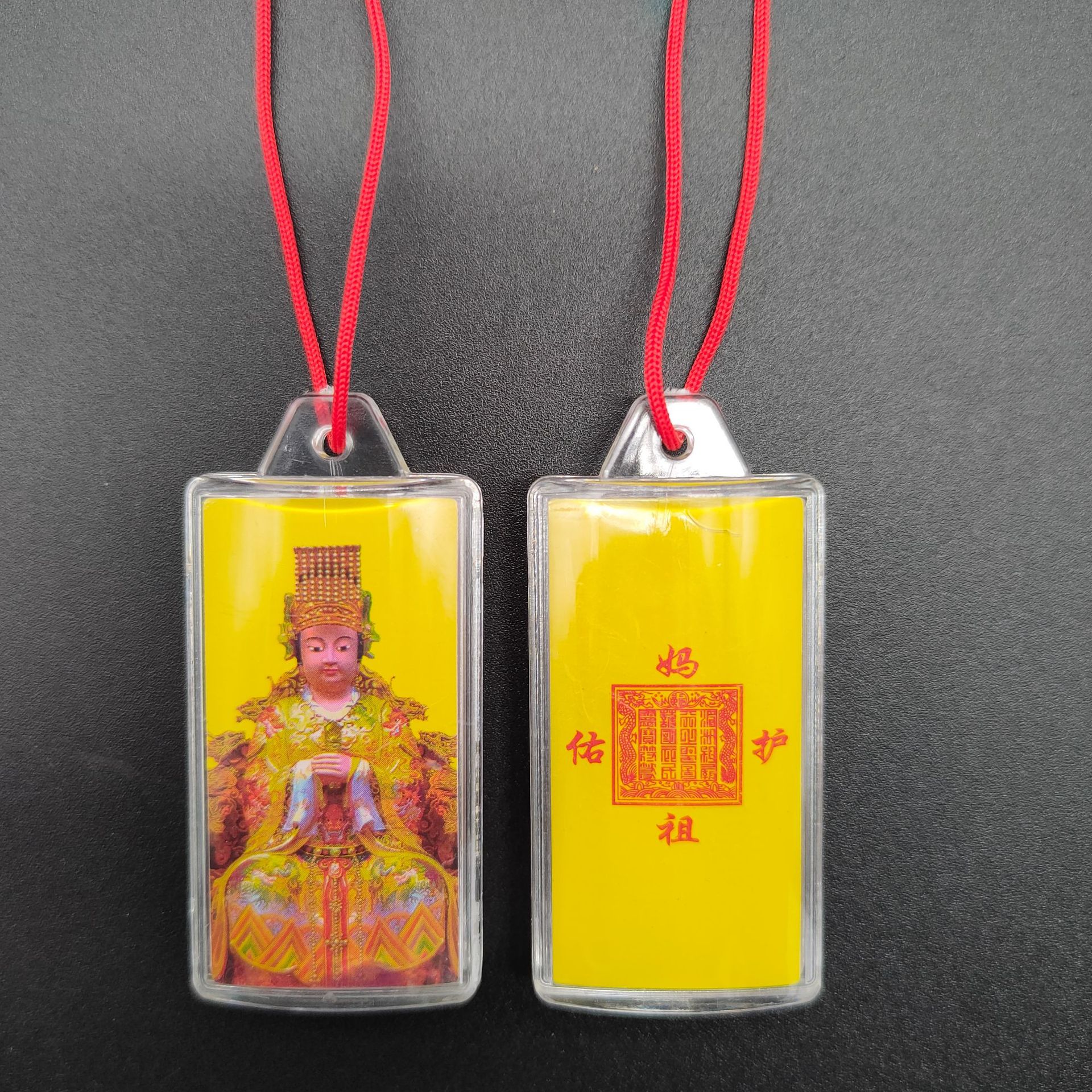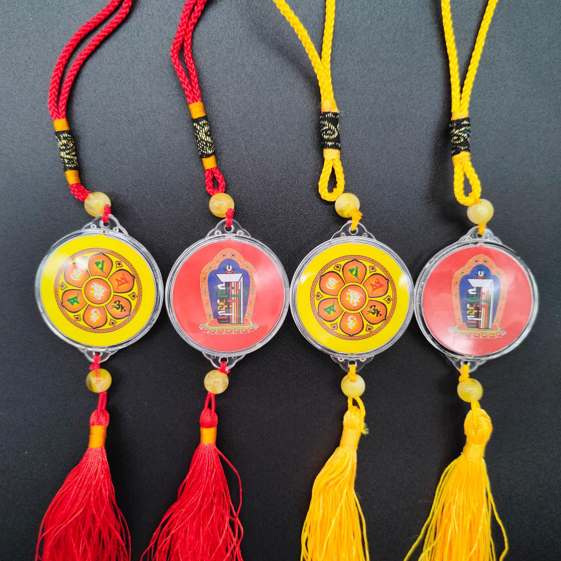 [弘慧] 財神ペンダント中号卵形アクリルペンダント赤黄コーヒーロープ五色線ペンダント362
