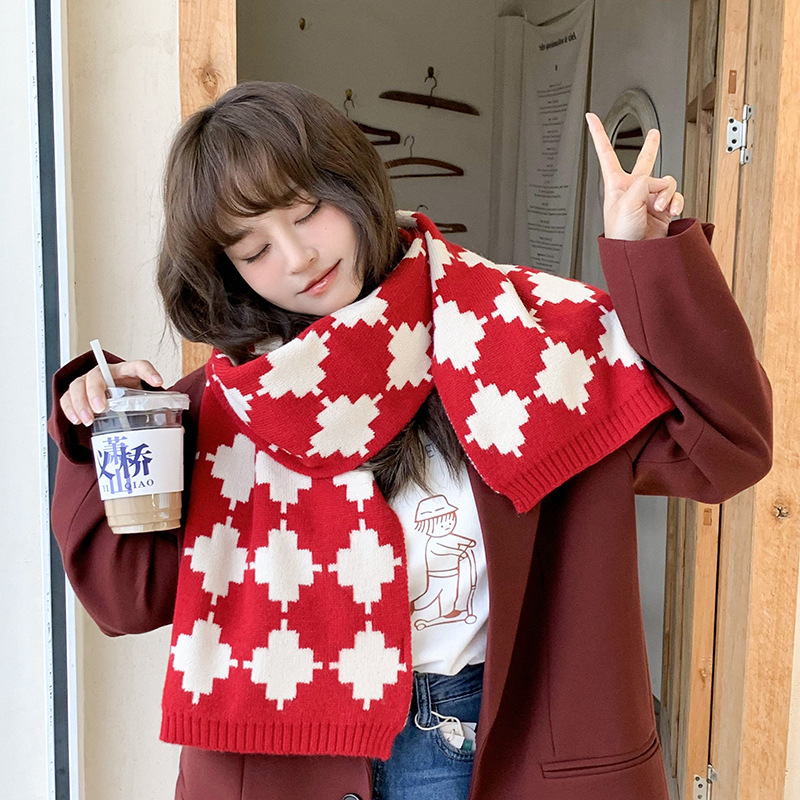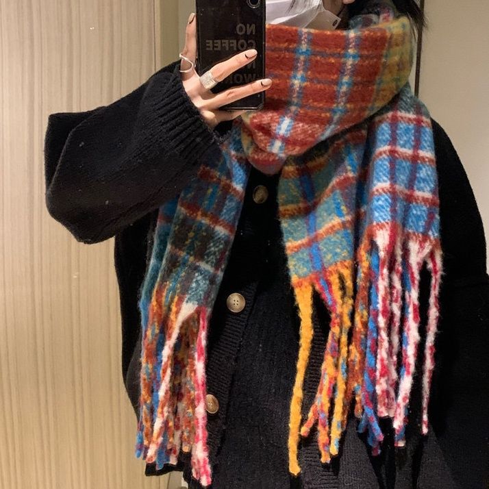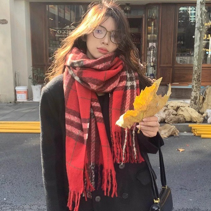 チェック柄スカーフ女性の冬のハイエンド秋冬新作クリスマスと新年韓国語版多用途暖かいスカーフニットショール