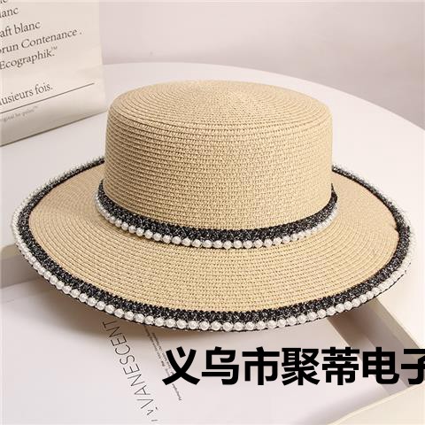 帽子の女性の夏のビーチの海辺の旅行の麦わら帽子の韓国版の真珠の日焼け止めの帽子の高級感の紫外線防止の日よけの帽子