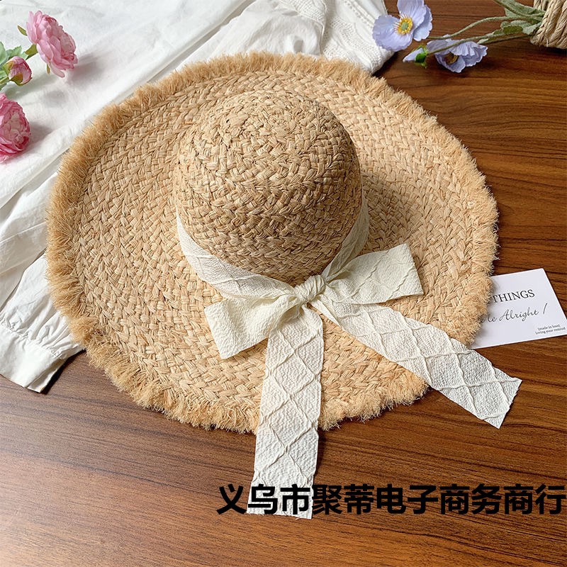 帽子女性のビーチ海辺旅行大きなつば麦わら帽子サンハット夏の新しいハイエンドラフィア日焼け止め帽子