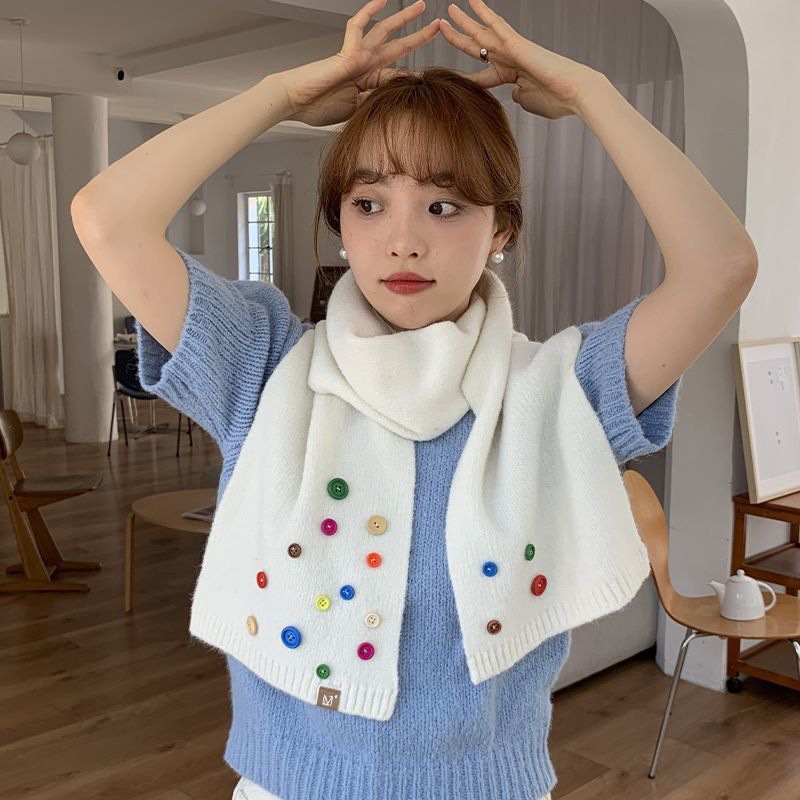 マフラーの女性の冬の高級感の韓国版秋冬の新型のカラーボタンは首の学生を囲みます。