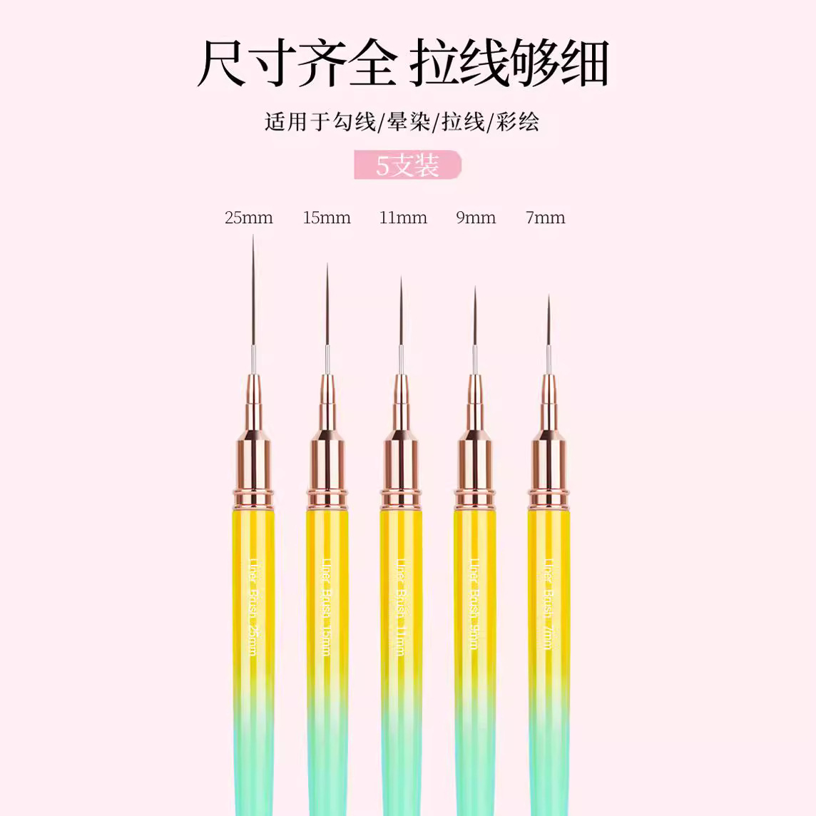 新品マカロン系超细かいドローイングネイルサロン専用ネイルブラシセット5本入极细画花