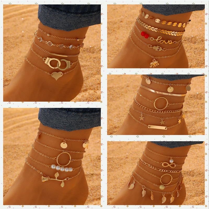 欧米風多層重ね付けフットチェーン アマゾン ヴィンテージ クラシック スパンコール 銅の葉 八の字 ビーチセット ジュエリー