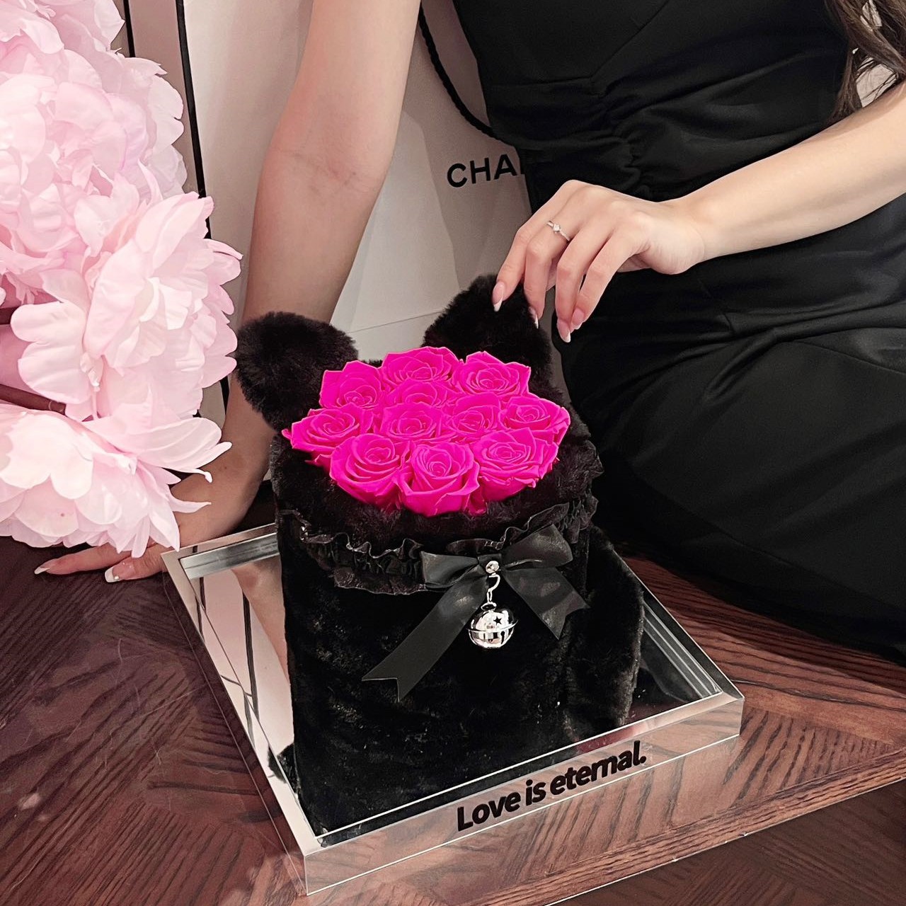 メーカー直発バレンタインデー永生花猫耳抱っこ桶バラ花クリスマスプレゼント卸売り