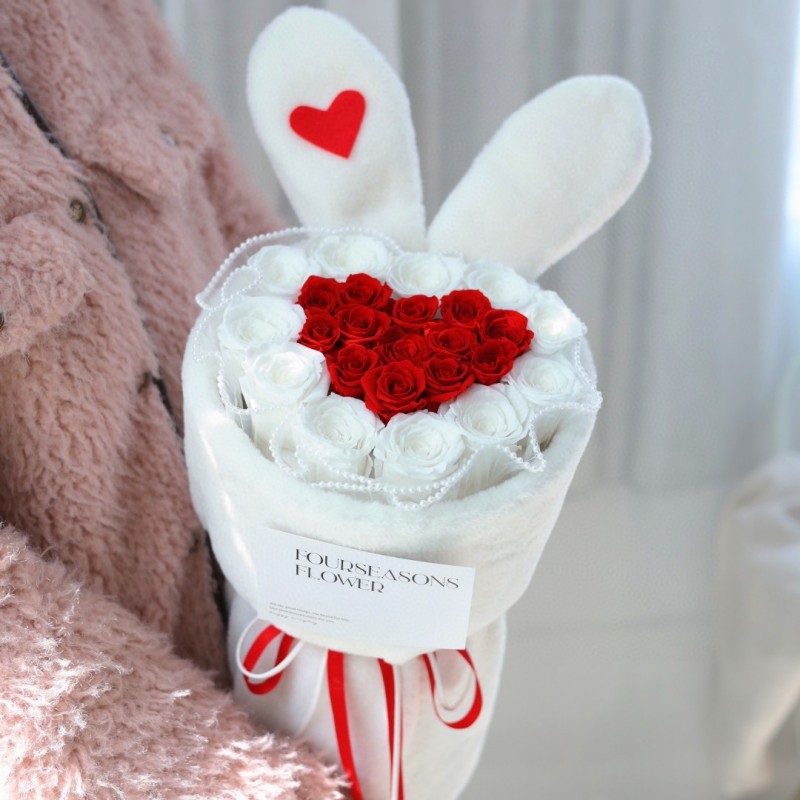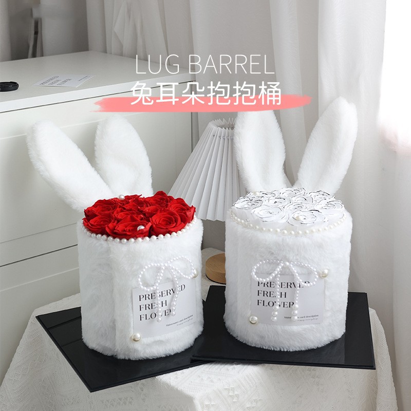 国境を越えたクリスマスプレゼントは彼女の誕生日プレゼントウサギ耳抱っこ桶薔薇花束永生花乾花卸売り