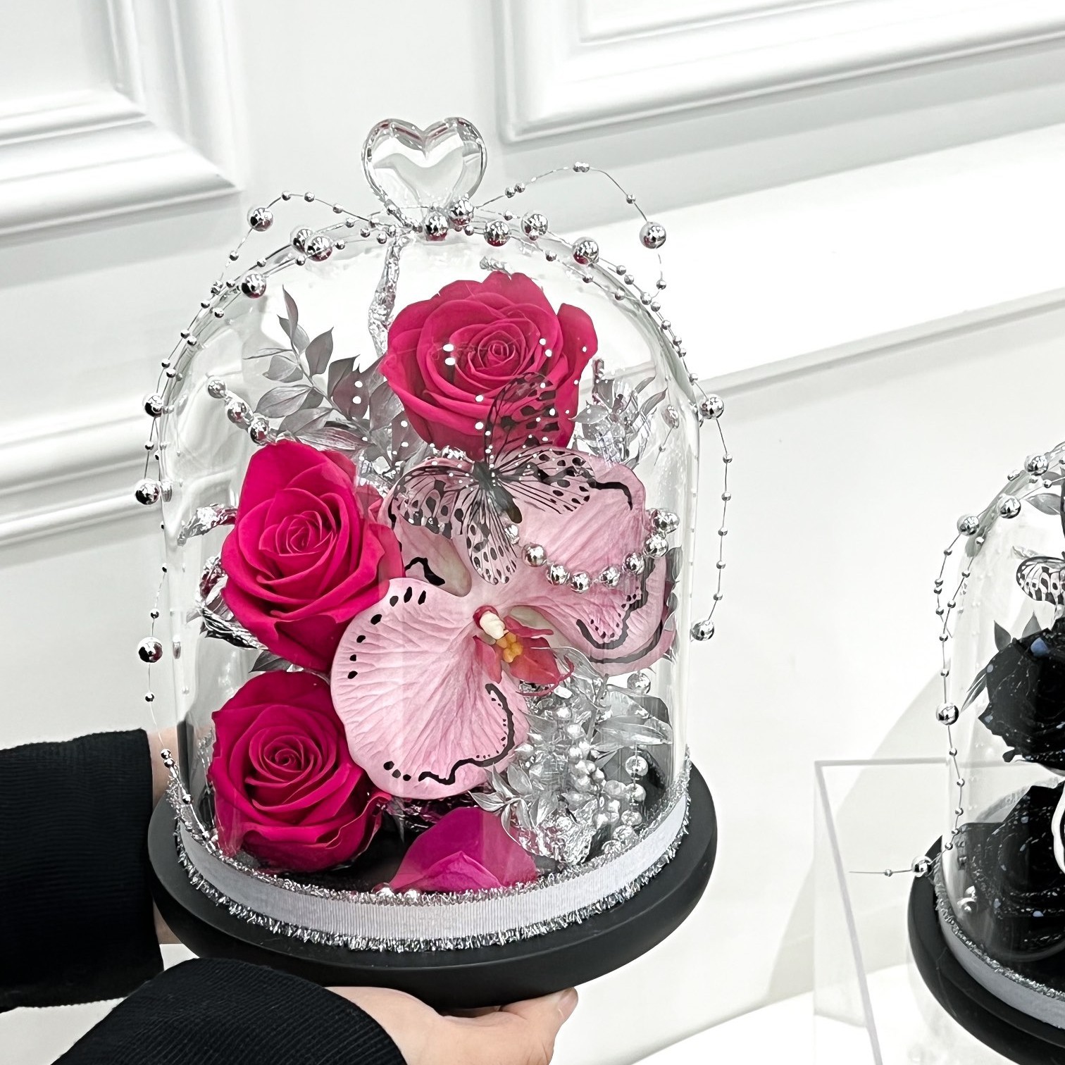 クロスボーダーの人気永遠の花銀色の恋のバラの花のガラスカバーは彼女の創意的な誕生日プレゼントの卸売りを送ります。