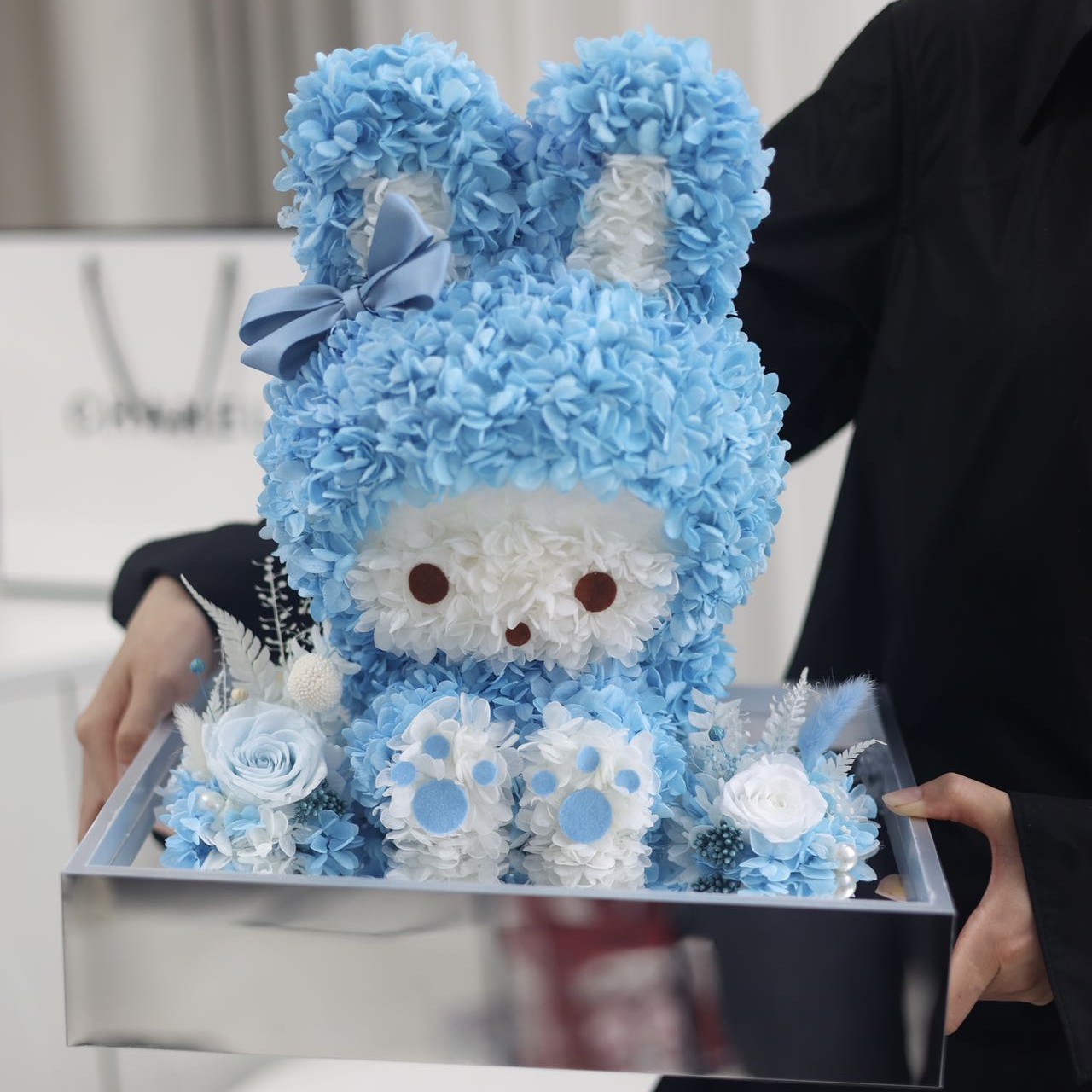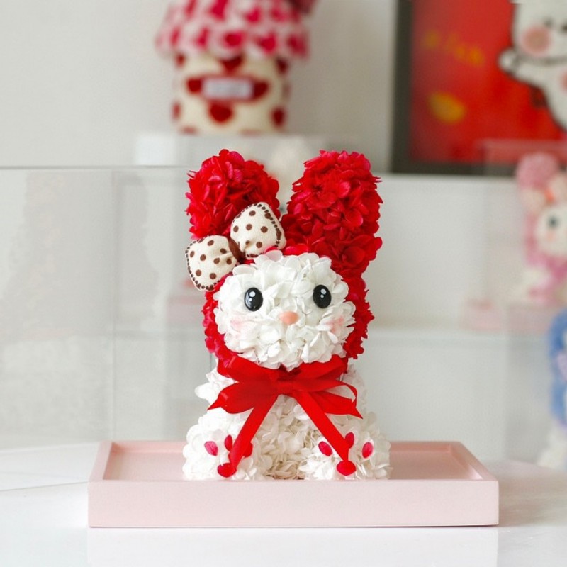 ウサギ年プレゼントアジサイ真花永生花かわいいウサギバレンタインデープレゼントウサギ年は彼女に新年プレゼントを贈る