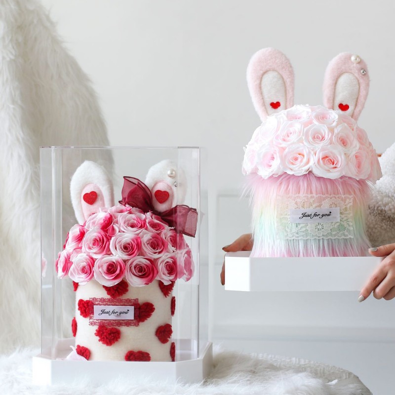 メーカー直髪永生花大白兎真花保花花置物バレンタインデー彼女誕生日プレゼント卸売り