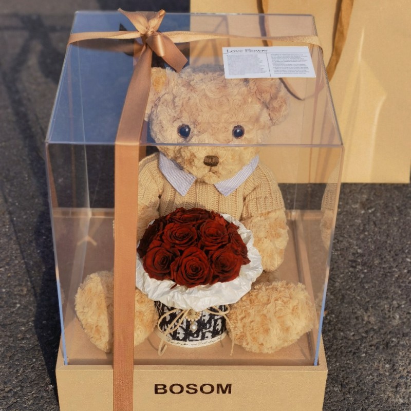 永生花テディベア抱っこ桶バラの花束創意置物七夕は彼女の親友創意誕生日プレゼントを送ります。