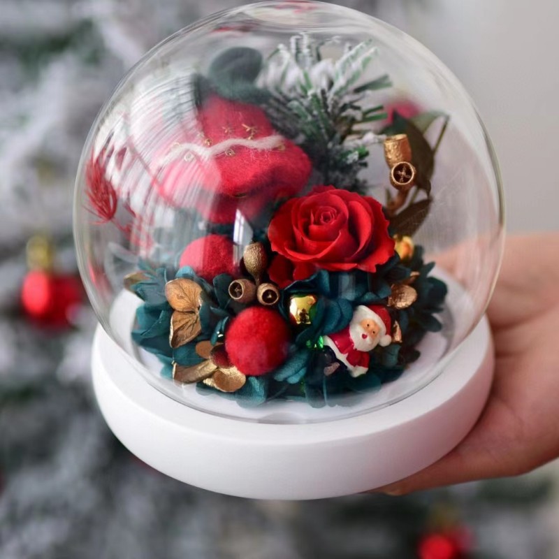 クリスマスバレンタインデープレゼント花屋ソースクリスマスツリー小夜灯ガラスカバー永生花diyドライ花卸売り