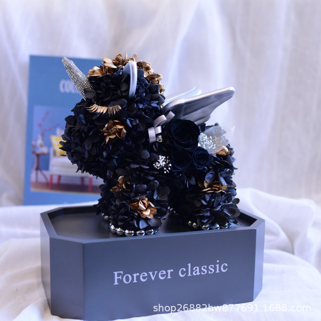 永生花変装玉桂犬クリスマス創意バレンタインデープレゼント保花乾花公仔アクリル置物