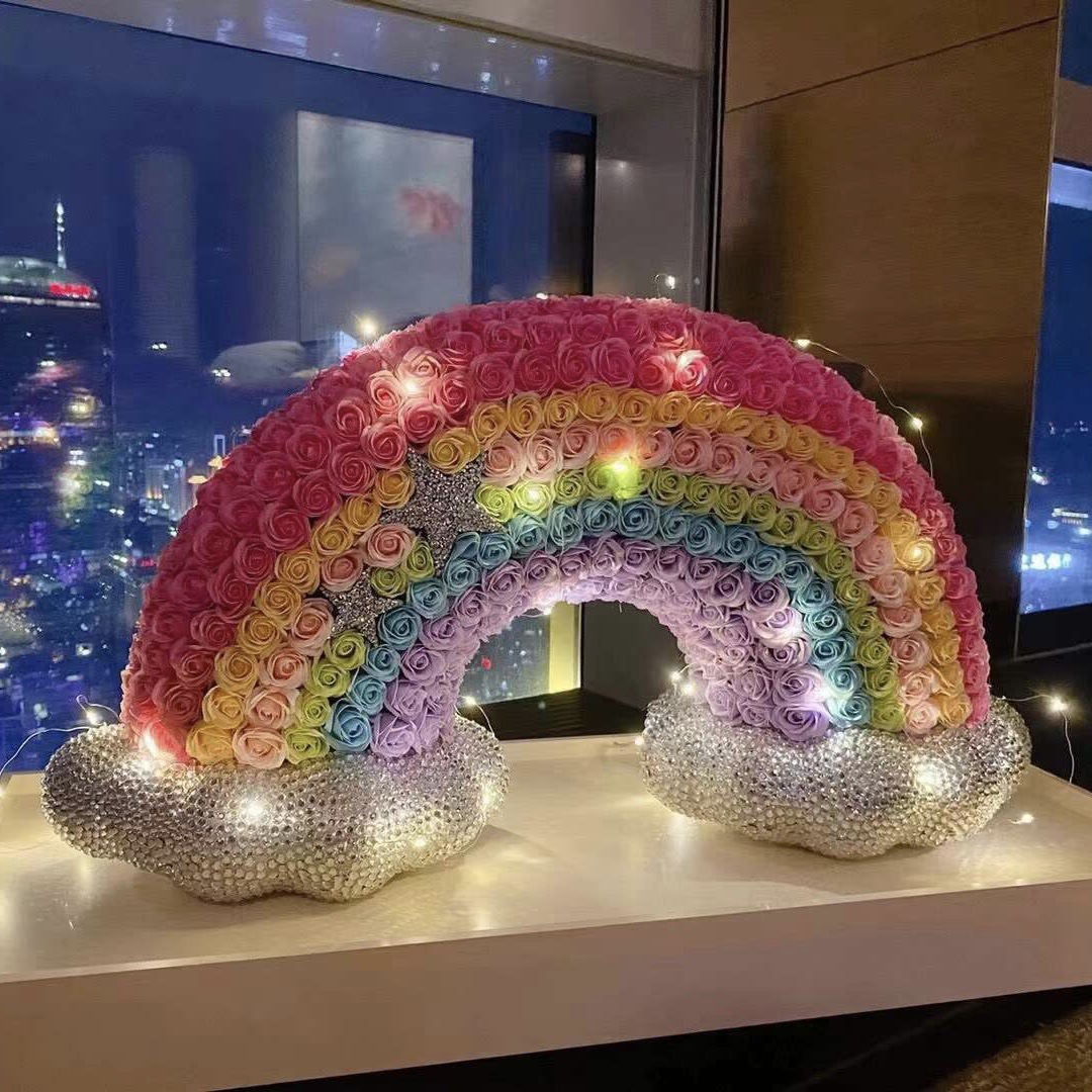 ピンク同金永生花虹バレンタインデープレゼント永生花石けん花花束