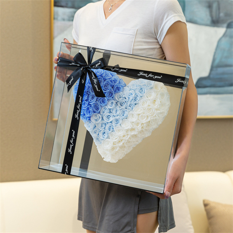 メーカーは新年のバレンタインデーに彼女の99輪のバラの永遠の花の鏡面の愛のアクリルの花の箱を送って郵送します。