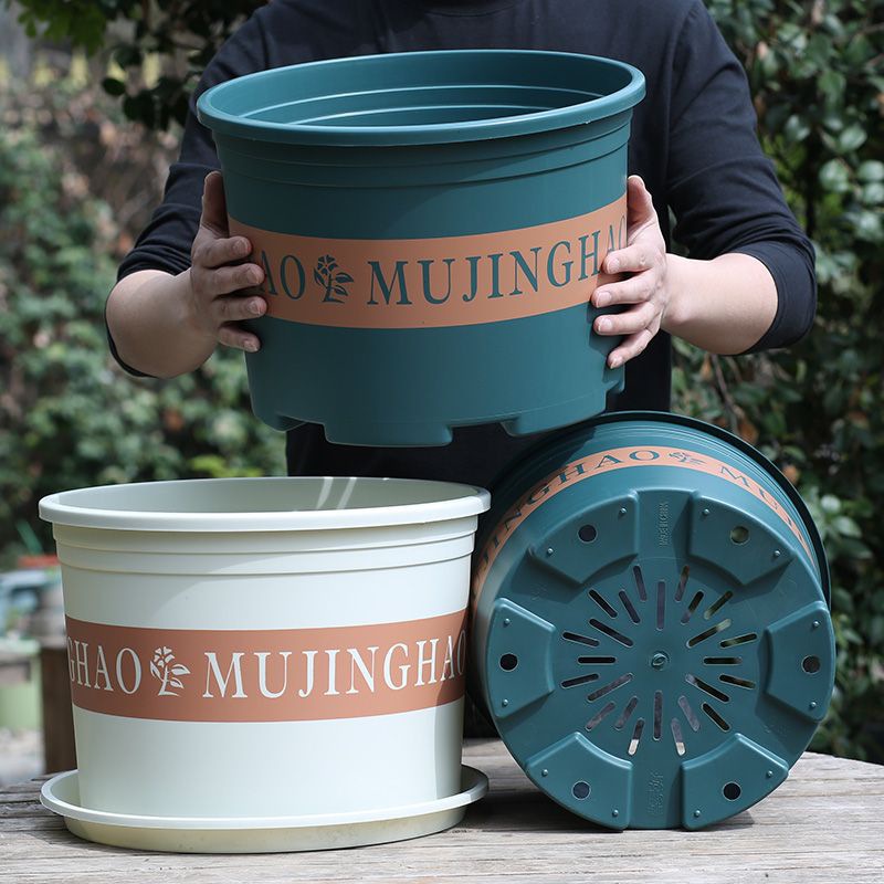 木を植える大きい植木鉢のプラスチックは厚くて陶磁器の大口径の庭の特大サイズの果樹の植木鉢の円形の50特価をまねます。