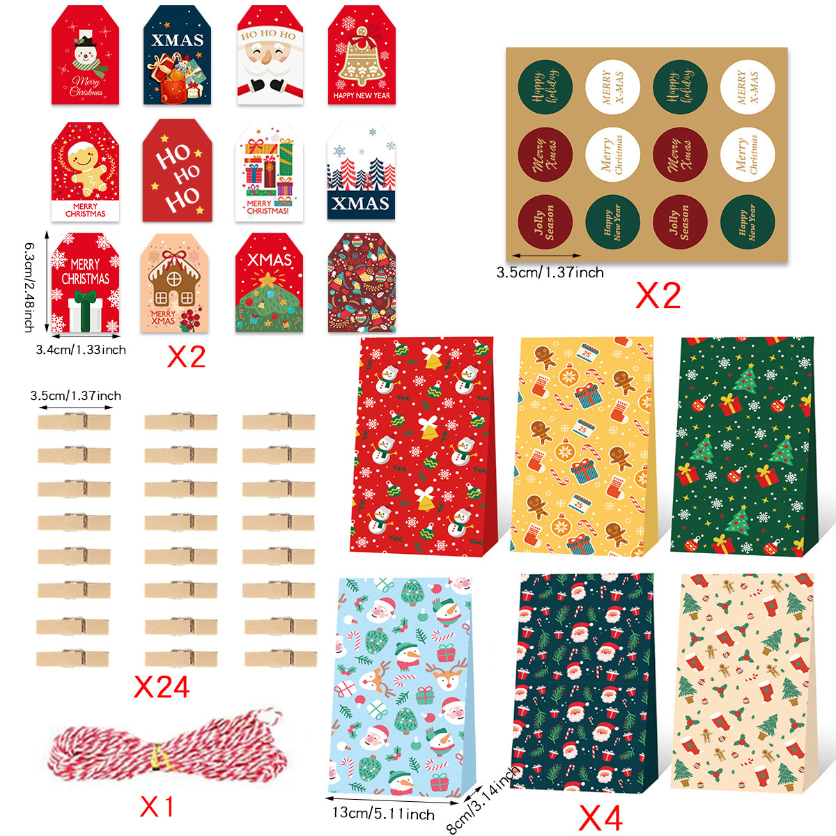 クリスマスのギフトバッグのクリスマスのステッカー24のセットのアマゾンのクリスマスの降临カレンダーのキャンディーの纸の袋の包装袋