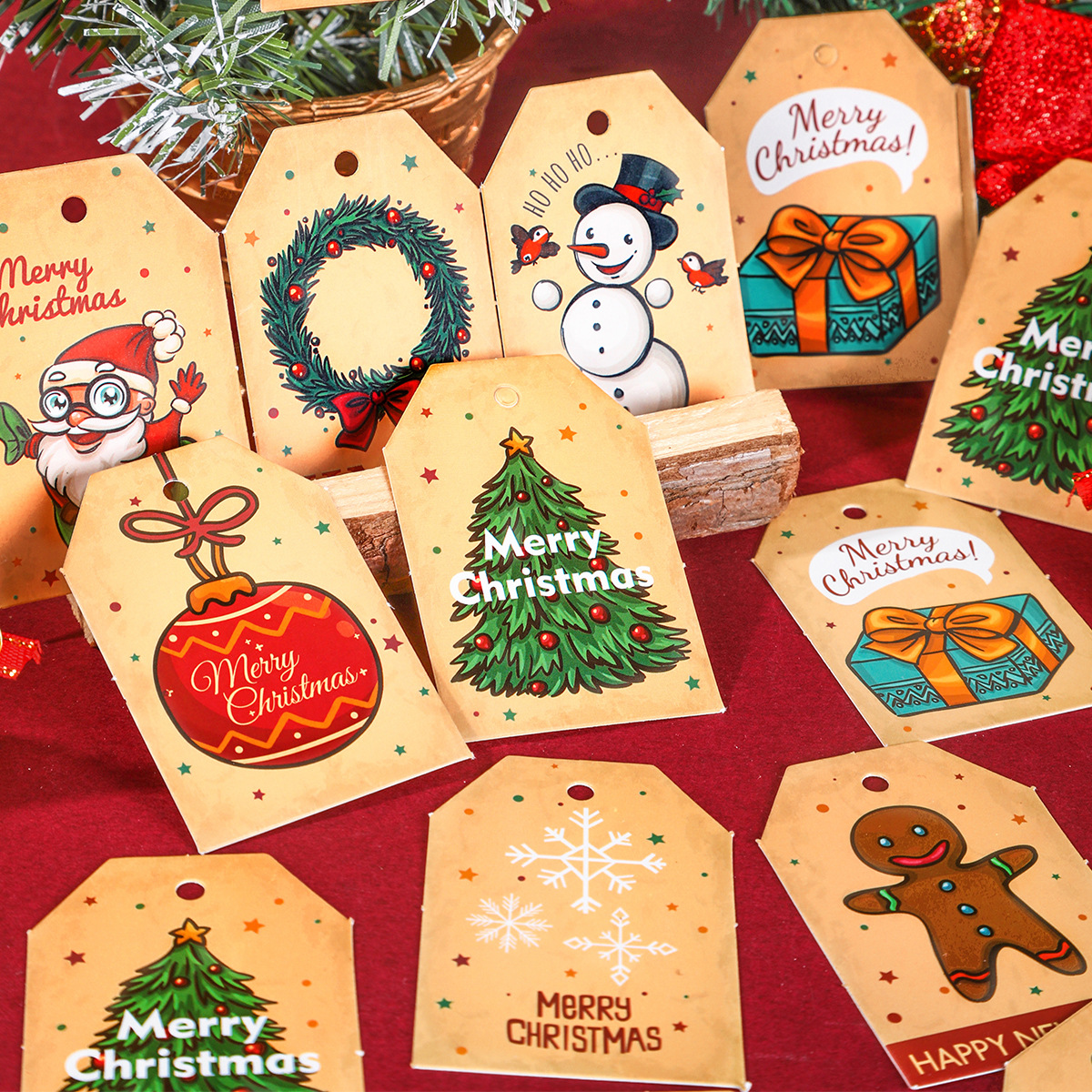 国境を越えた新しいクリスマス祝福カード白い紙吊り札セットサンタクロースプレゼント焙煎包装ラベル
