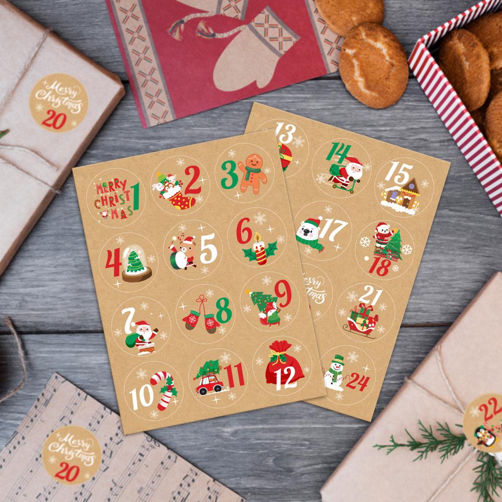 24枚セットクリスマスグリーティングカードクリスマスギフトカード可爱い漫画の折り返しカードシート祝福メッセージカード封筒付き