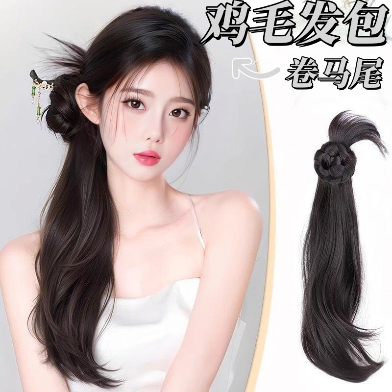 丸頭、千金、花のつぼみヘアウィッグ、女性用高頭頂ツイストクリップ、ふわふわヘアアーティファクト、後頭部ウィッグバッグ