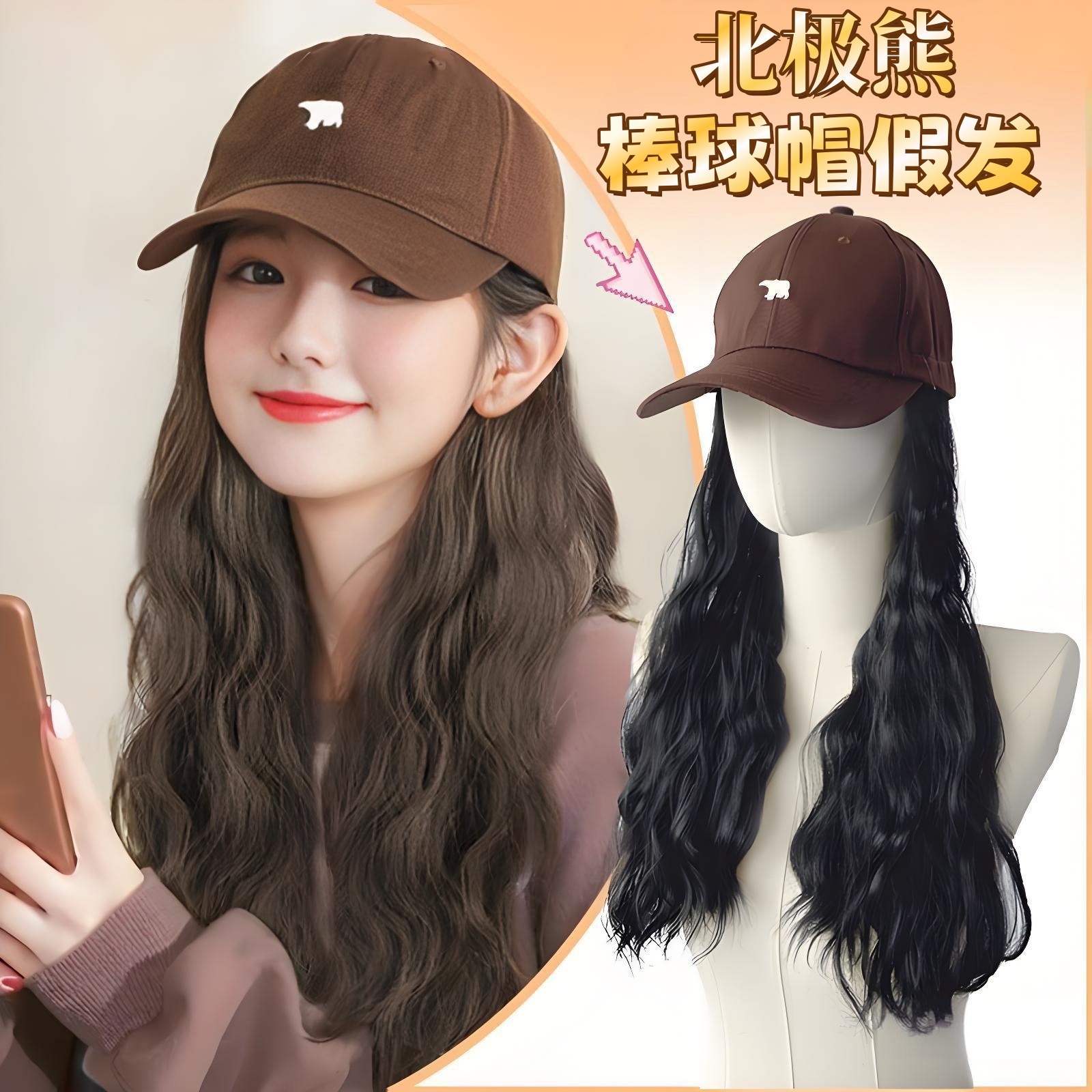 AliExpress アメリカの女の子シロクマ野球帽水の波紋かつら一体型化学繊維高温シルク工場直販