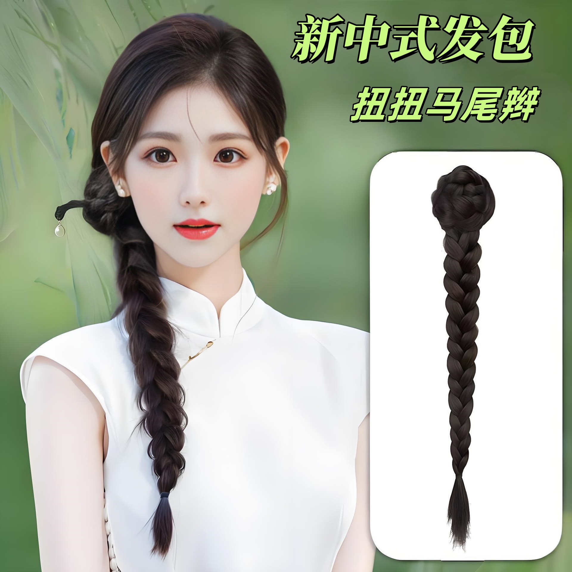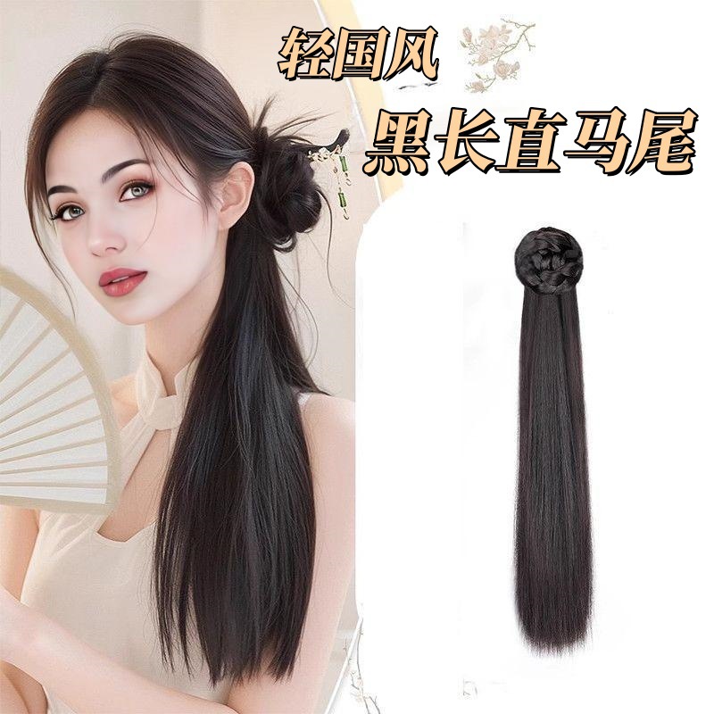 レトロウィッグポニーテール女性の新しい中国風の古代スタイルのウィッグクリップ中華民国スタイルの黒のロングストレートポニーテール在庫あり工場直販