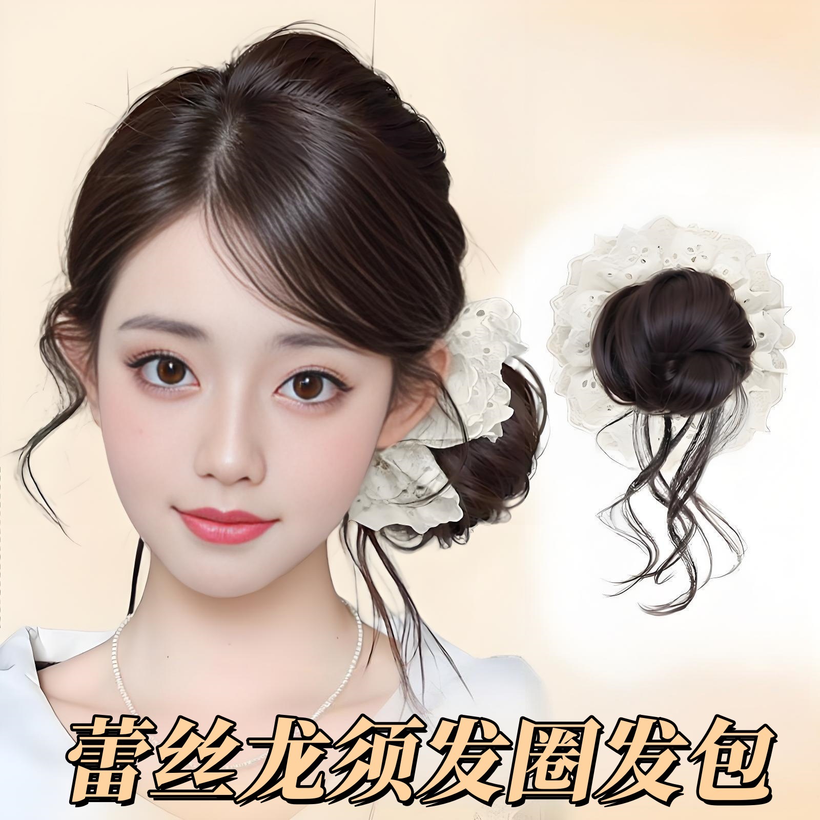 女性用第2類電子商取引ミートボールヘアウィッグ、模擬レースクリップ、花のつぼみヘアアーティファクト、自然なふわふわウィッグサークル
