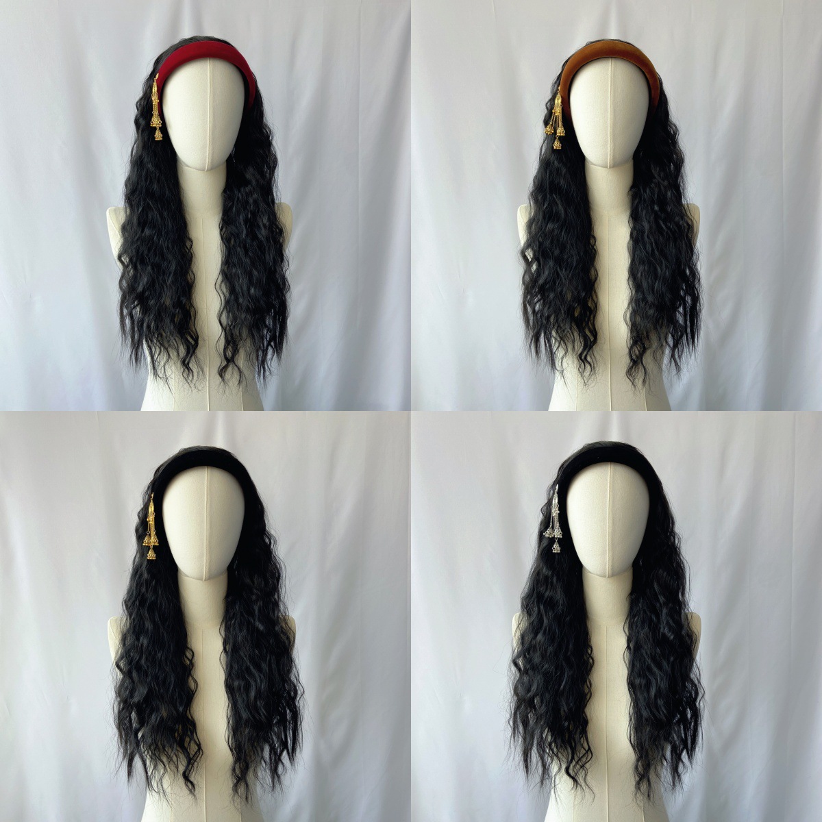 メーカー卸売アマゾン貿易人気ボヘミアンヘアフープ水の波紋ロングカーリーヘア一体型繊維高温シルク